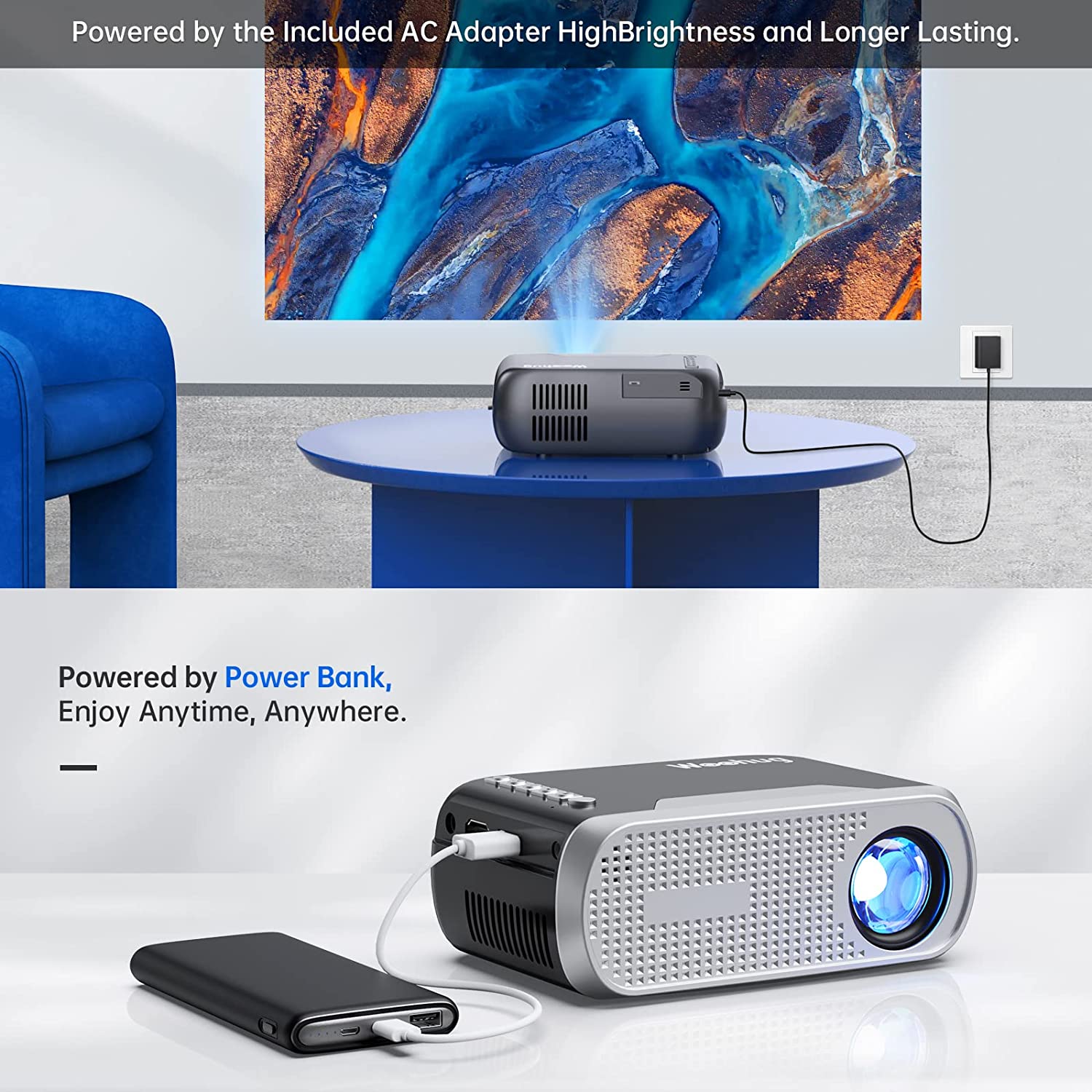 • Mini Portable Projector: This Portable projector is designed in small size ( 5.63"*3.78"*2.28"/0.75 lb ). It is small enough to fit in your bag. Therefore, it is rather light and handy to carry when you go out(Support Power Bank Supply). Ideal for home theater projector video in the backyard, hosting parties, and movie nights while traveling.