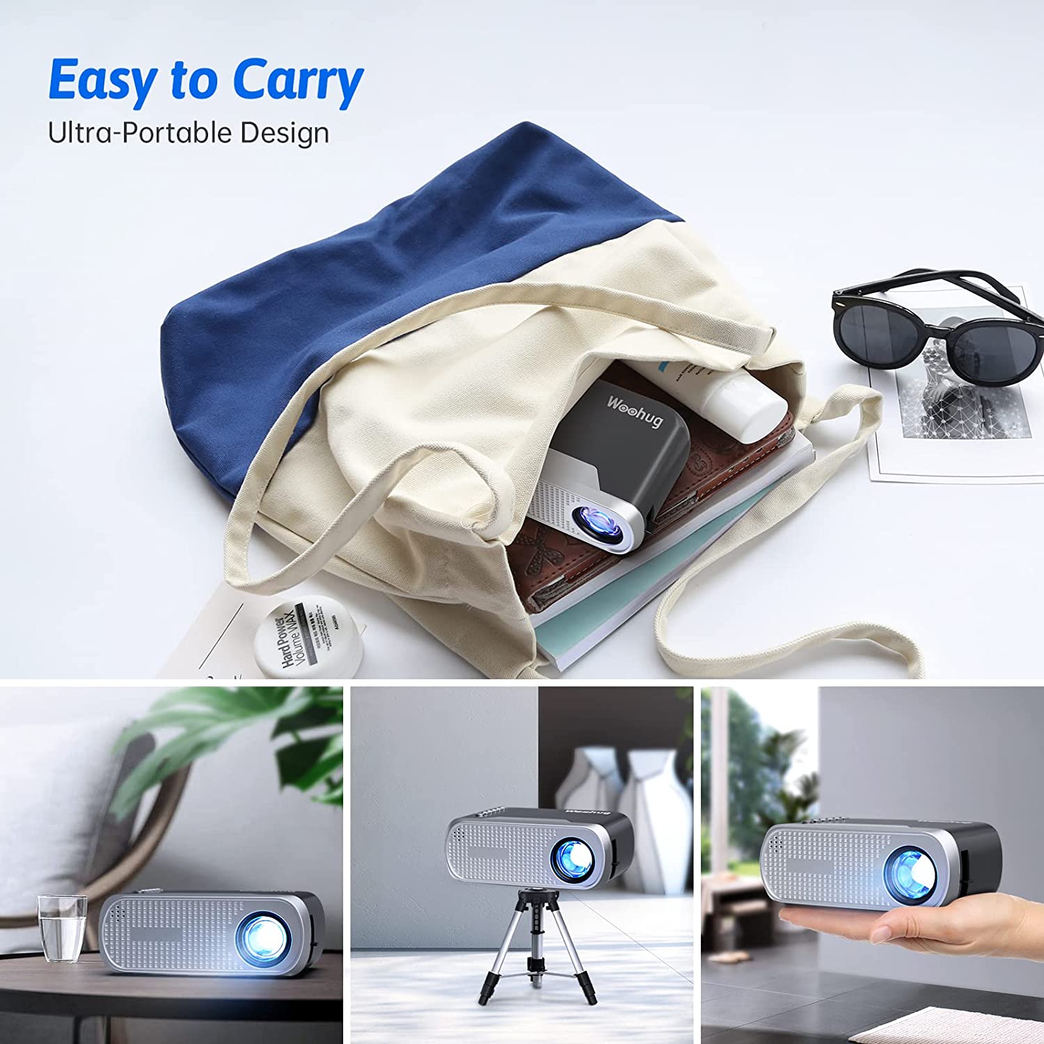 Mini Projector for iPhone, Woohug Mini Portable Projector for Kids Gifts, Movie Projector for Outdoor use, Small Home Theater Projector Full HD 1080P Supported Projector Compatible with HDMI, USB