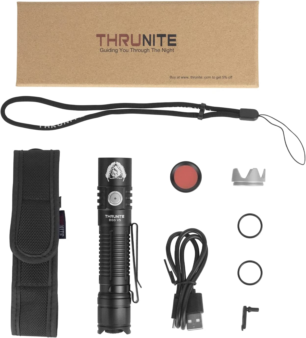 ThruNite BSS V5 Flashlight Black Scout Survival Customized Edition Max 2676 Lumens USB C Rechargeable EDC Flashlights (Black, Cool White)