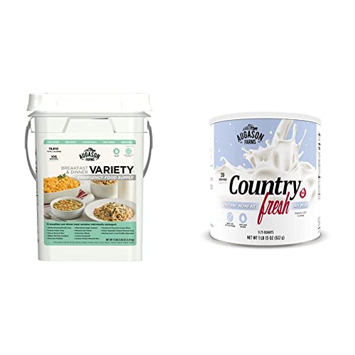Augason Farms Breakfast and Dinner Variety Pail Emergency Food Supply Everyday Meals 4 Gallon Pail & 5-90620 Country Fresh 100% Real Instant Nonfat Dry Milk, 1 lb., 13 oz.