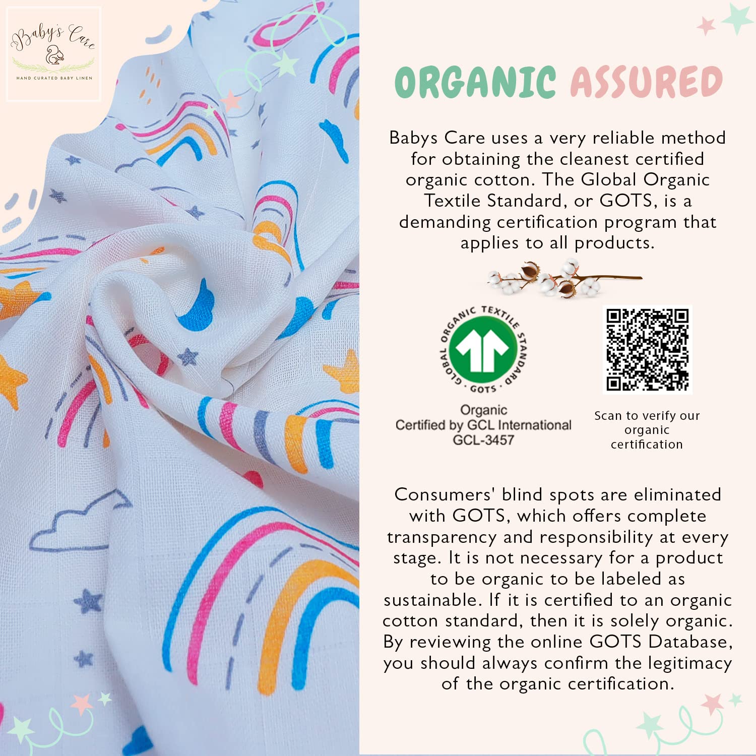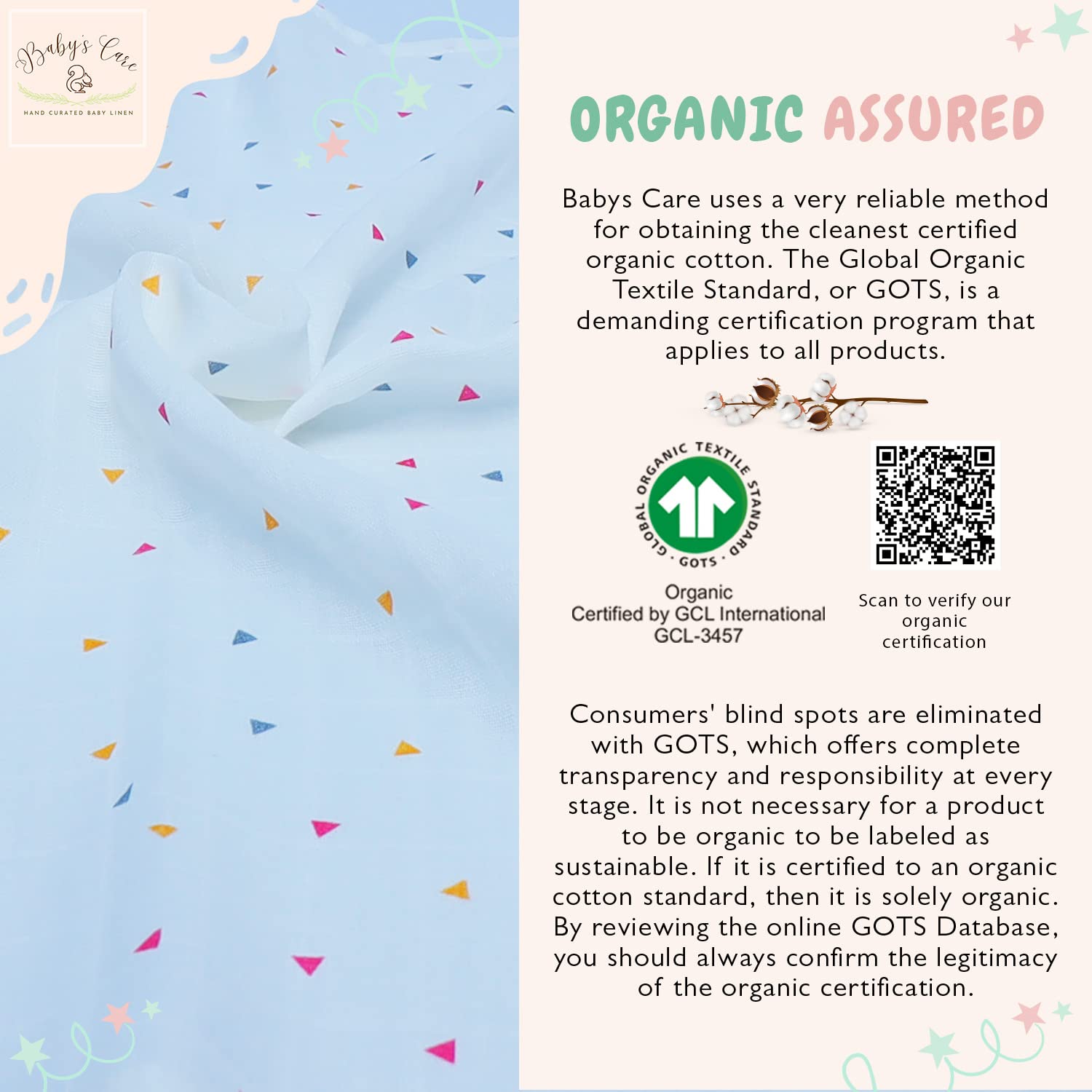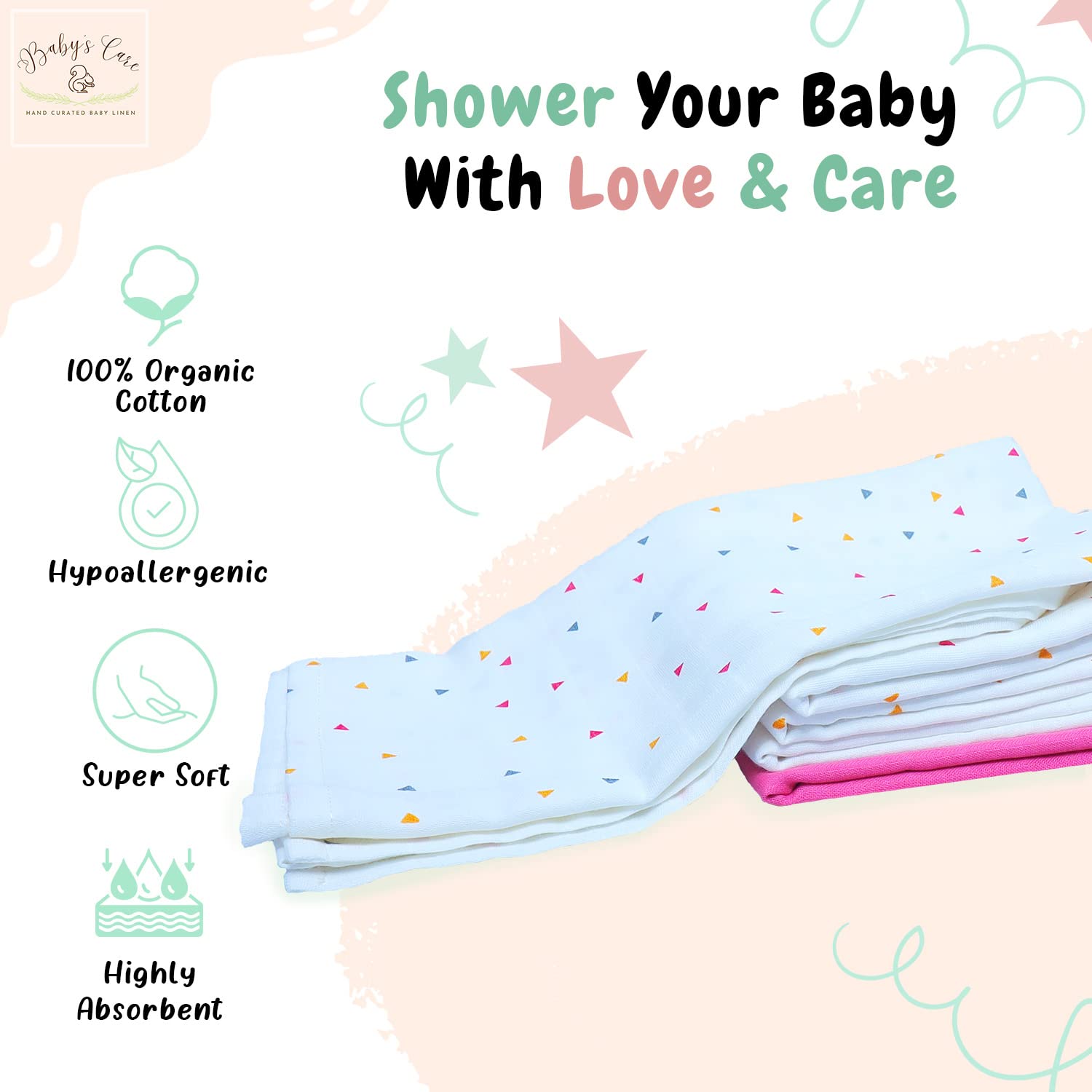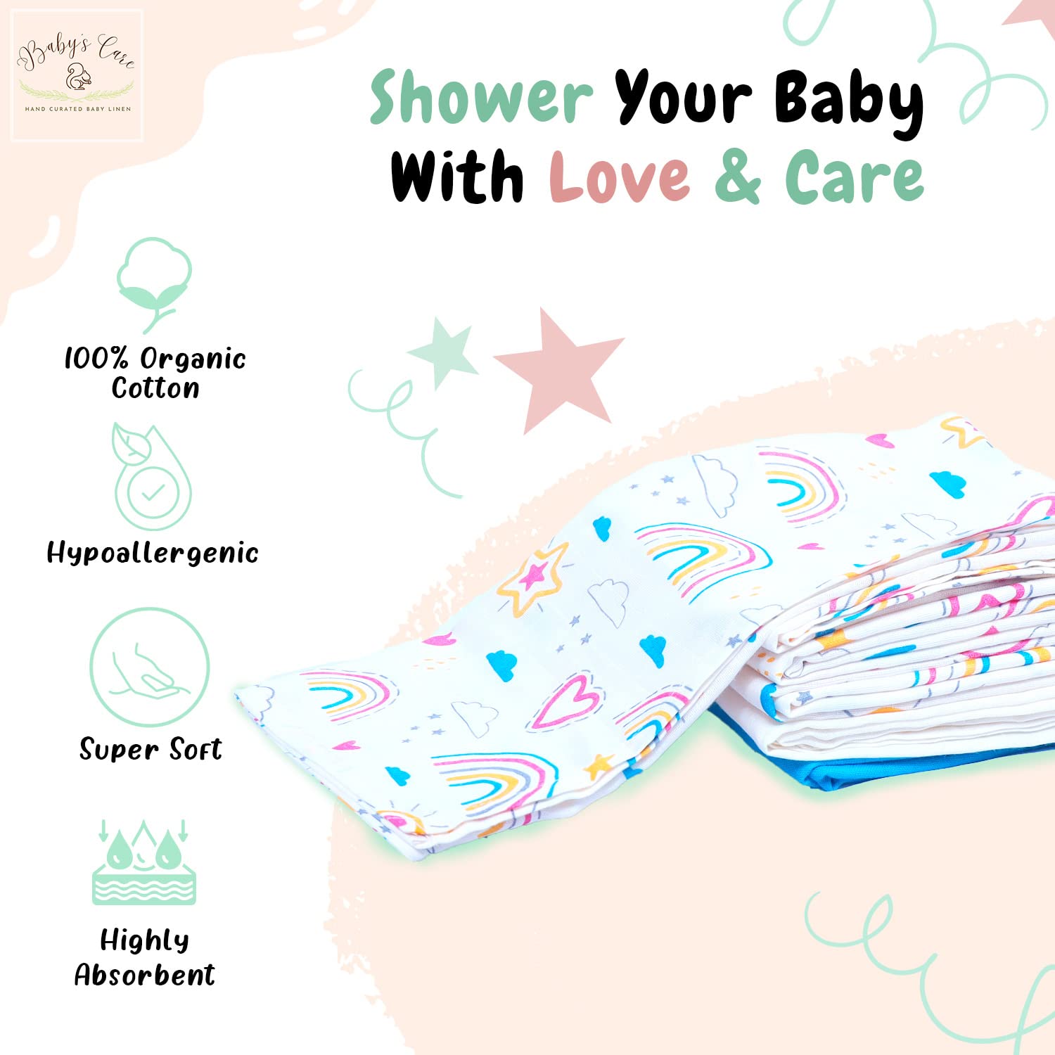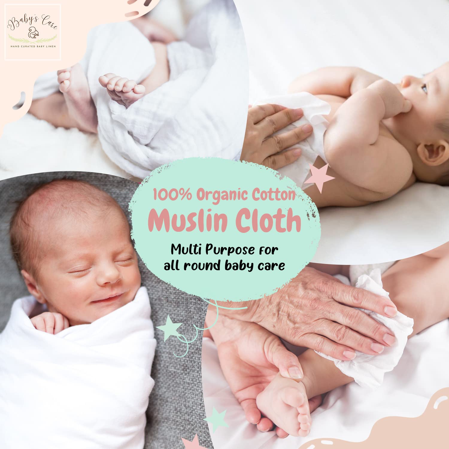We know how important these early years are for you & your baby’s care should be nothing short of excellent. So, we make sure to pack just the right amount of motherly love in our products. We select the safest and most reliable baby care products to keep you at ease. Our line of products will cater to your baby’s every need, are super easy to use, so that you can focus on what is really important, your baby’s needs. Babys Care is a GOTS certified brand, inspired by the joy and wonder of childhood. We make baby baby accessories for kids aged 0 months - 6 years, offering enchanting range of bedding set, quilt box, portable diaper changing pad, muslin cloth, sleeping bag, bed pockets, wiping cloth & many more to come. Our products are premium 100% organic cotton, super soft, highly absorbent & hypoallergenic material. The products are high-quality, tried, and tested for basic industry standards. With our gender neutral baby items we offer these ranges with an eye-catching colors & themes, a guaranteed head-turner! As the products are made from cotton material, maintaining & cleaning them is not a difficult task. The products can be easily machine washed & hand washed, both. If you are looking for gifting something to gift to new parents or mom-to-be, then Babys care products are your best bet. These products can be gifted on several occasions like baby registry, birthdays, baby showers & many more. Our range of baby products is made specially to make your journey with your little one as joyful as can be. we understand that baby shopping can be an overwhelming experience for all the new mothers and fathers looking for the best products for their bundles of joy. Our products are designed keeping in mind all your needs, to help you find the best baby products! baby boy stuff baby girl newborn essentials baby stuff baby shower gifts gifts for babies muslin burp cloths registry for baby muslin swaddle blankets 6 month old baby essentials 3 month old baby must haves.