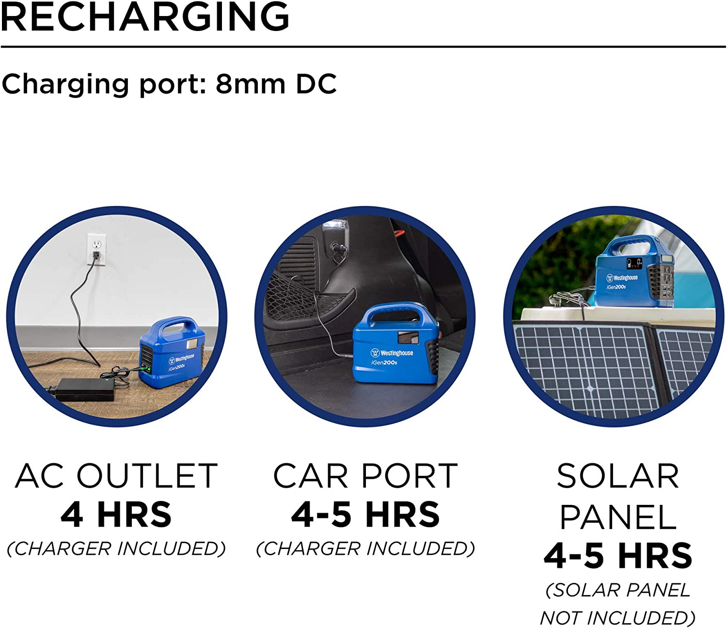 • CHARGES AT HOME, ON THE GO, OR IN THE FIELD: Charge to 80 percent in Less Than 4 Hours Using a Household Outlet or Less Than 5 Hours in the Car or With a Solar Panel (Panel Not Included)