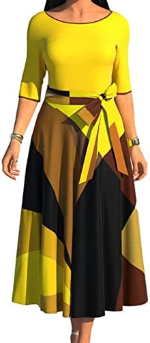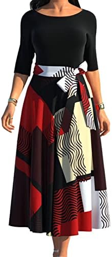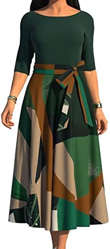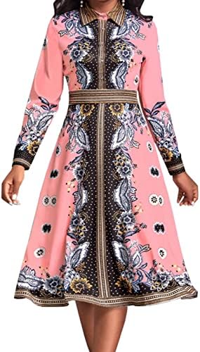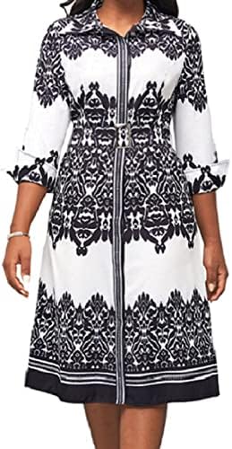 Women Button Down Dress features v neck,shirt collar,3/4 Sleeve,with Belt,printed midi pencil dress.