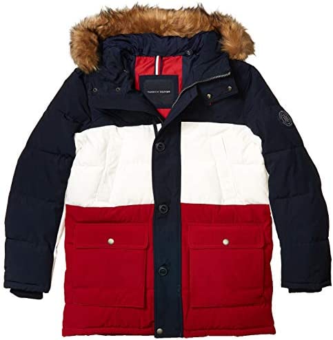 - Rib knit storm cuff details, rib knit detail on waist, and signature tommy embroidered flag at chest and tommy logo patch on arm