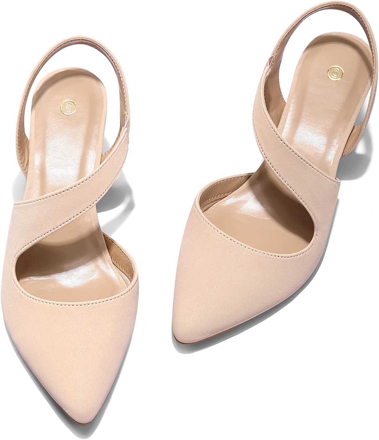 FASHION: Women's lady pumps with slingback design and classic pointed toe create the illusion of longer legs. Slip into a relaxed and exquisite state of mind with these pumps.