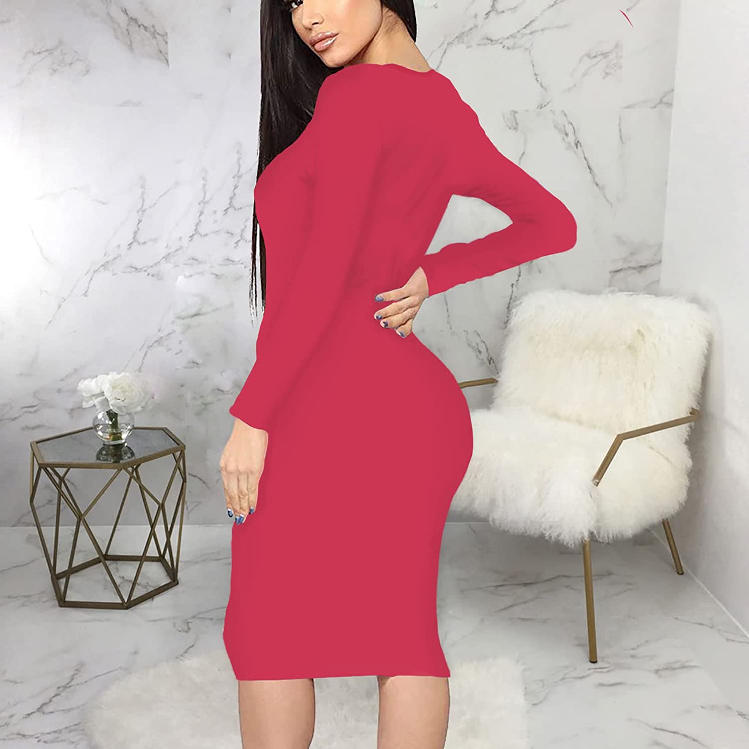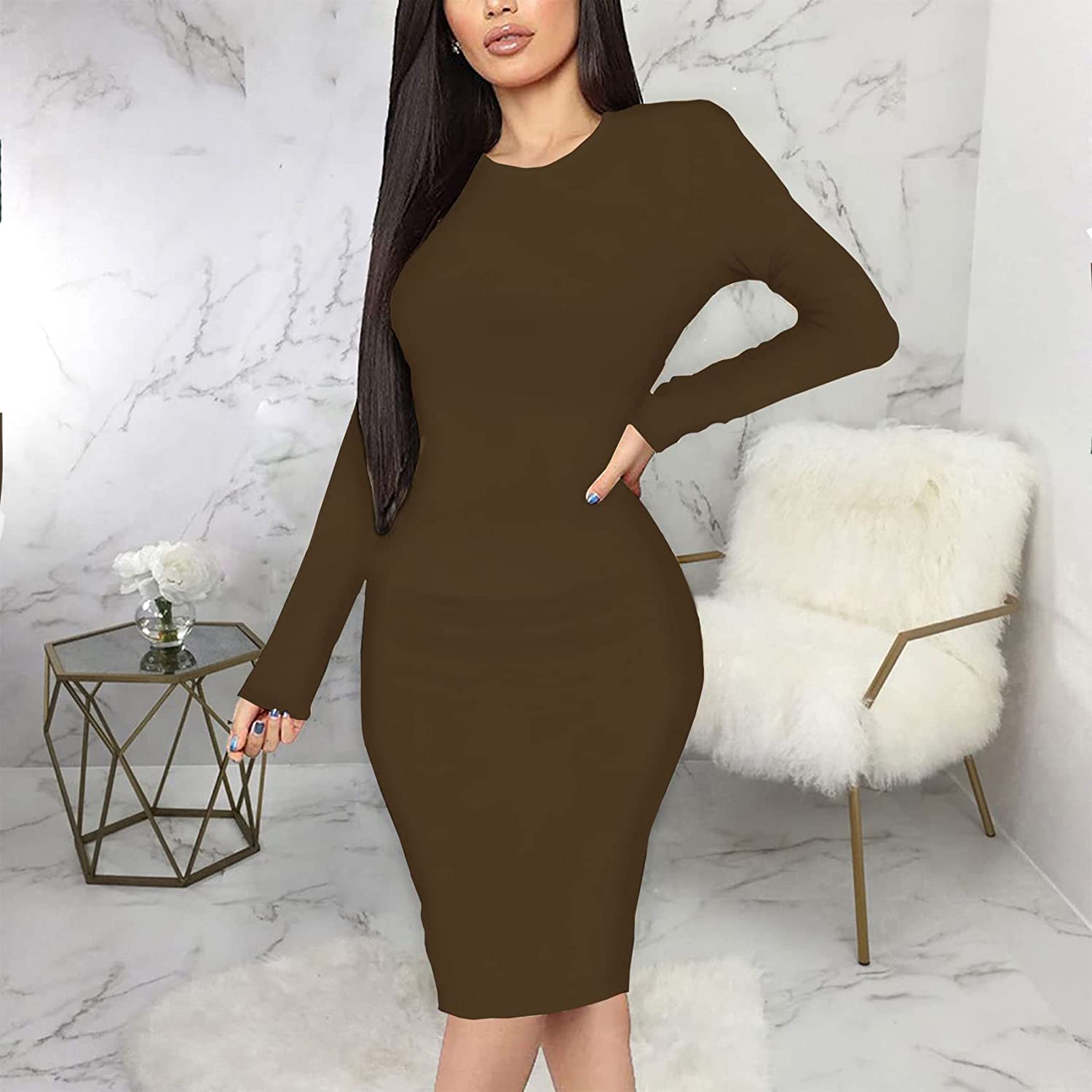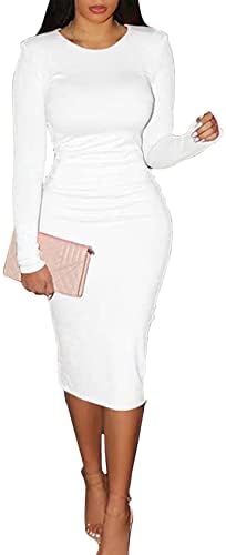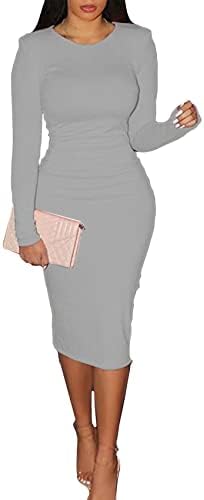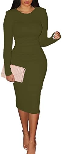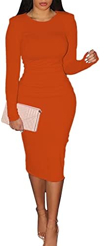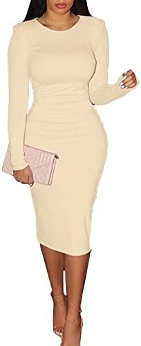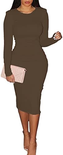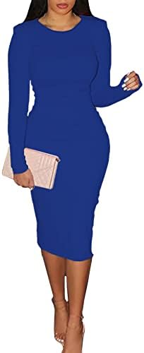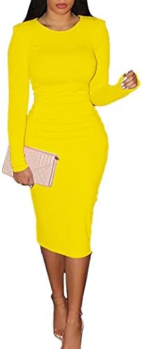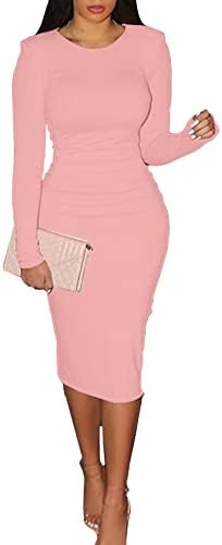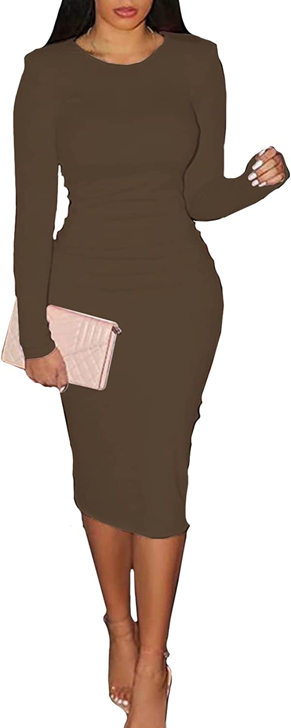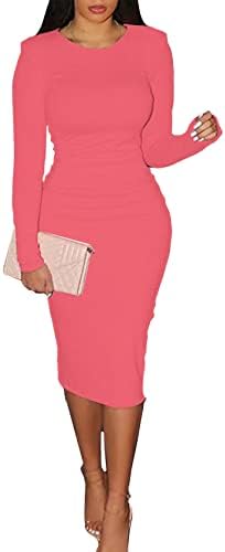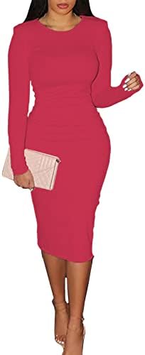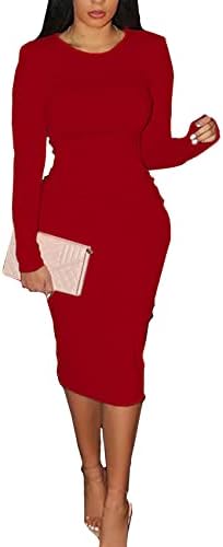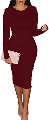 CYXKISS Bodycon Dresses for Women Long Sleeve Midi Sexy Round Neck Basic Party Casual Fitted Pencil Dress