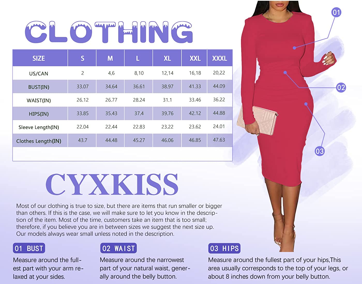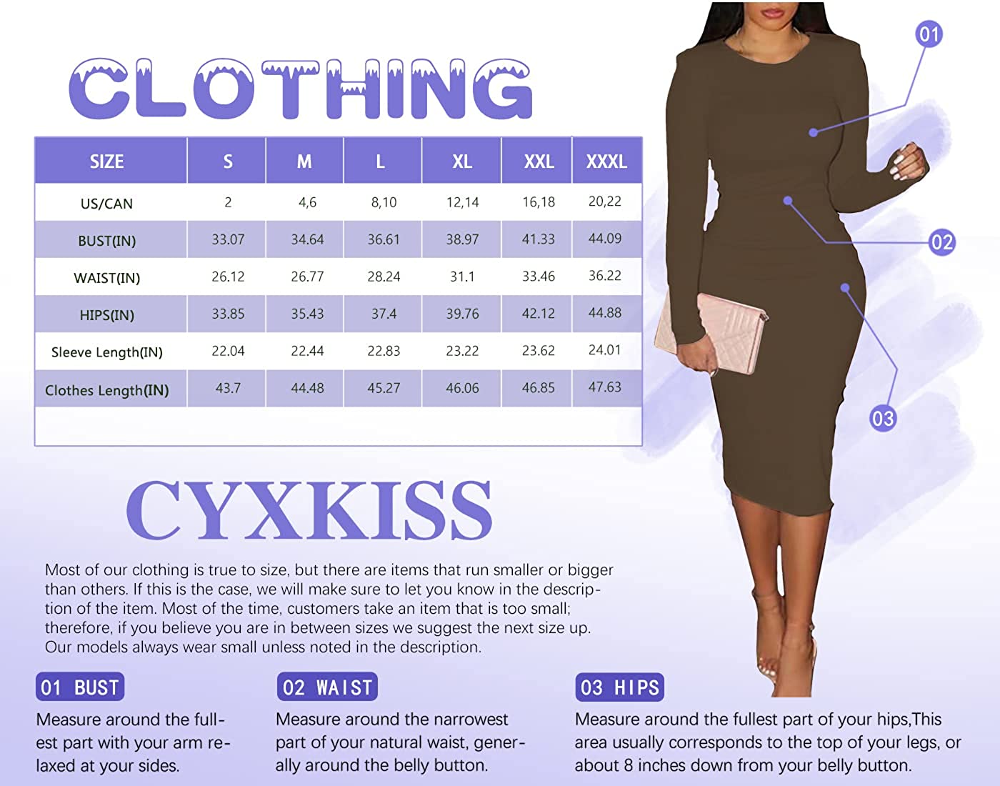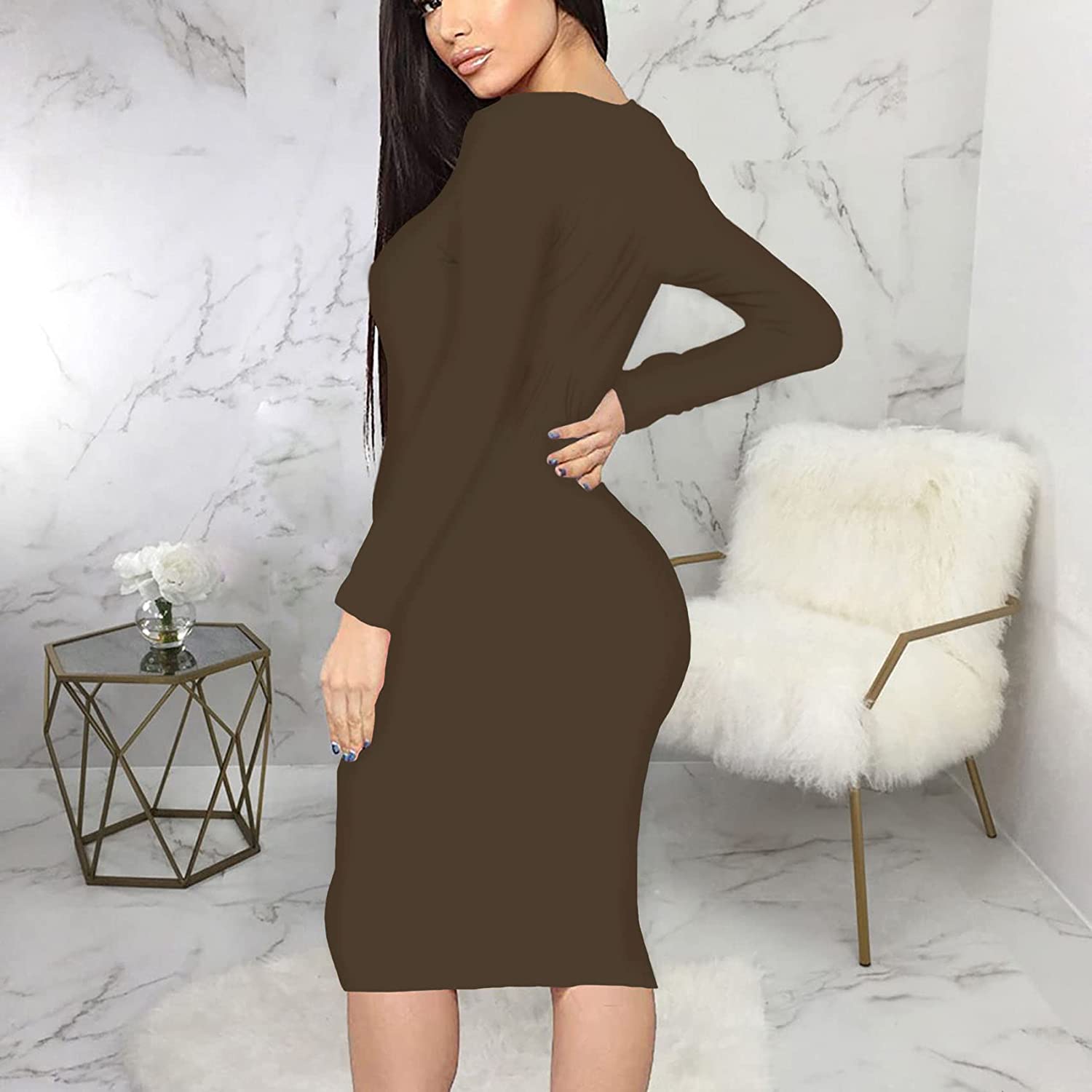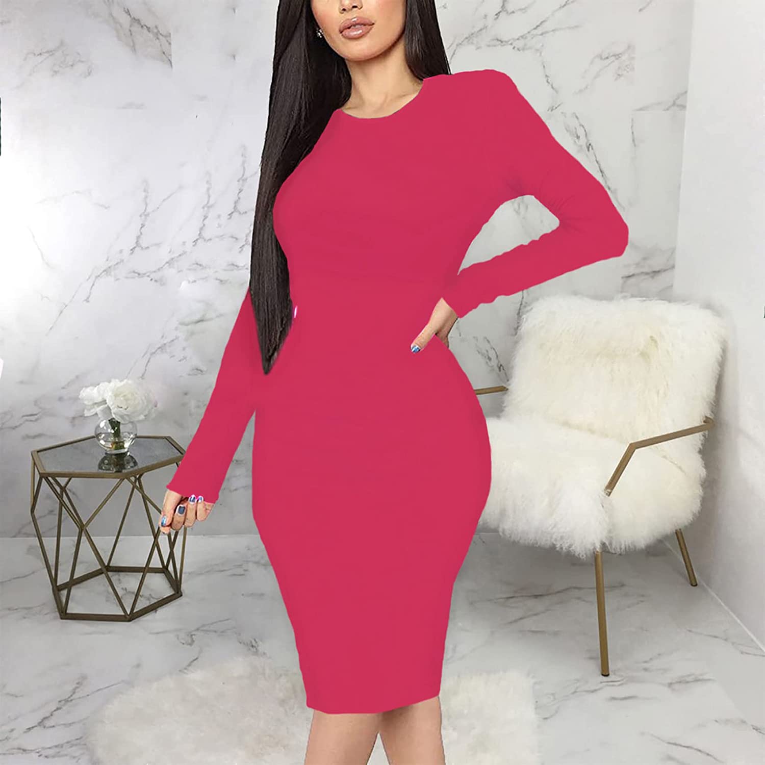 CYXKISS Bodycon Dresses for Women Long Sleeve Midi Sexy Round Neck Basic Party Casual Fitted Pencil Dress