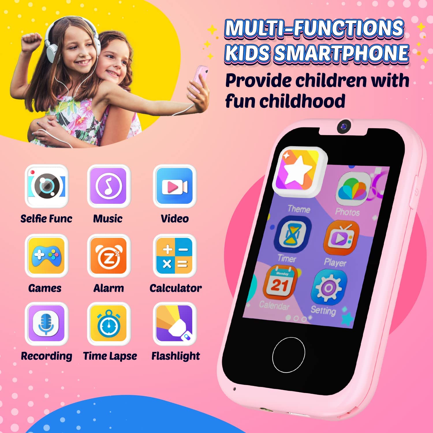 Prysyedawn Kids Smart Phone for Girls, Christmas Birthday Gifts for Girls Age 3-6, MP3 Music Player with Dual Camera, Toddler Touchscreen Phone Learning Toy for 3 4 5 6 Year Old Girl with SD Card-Pink