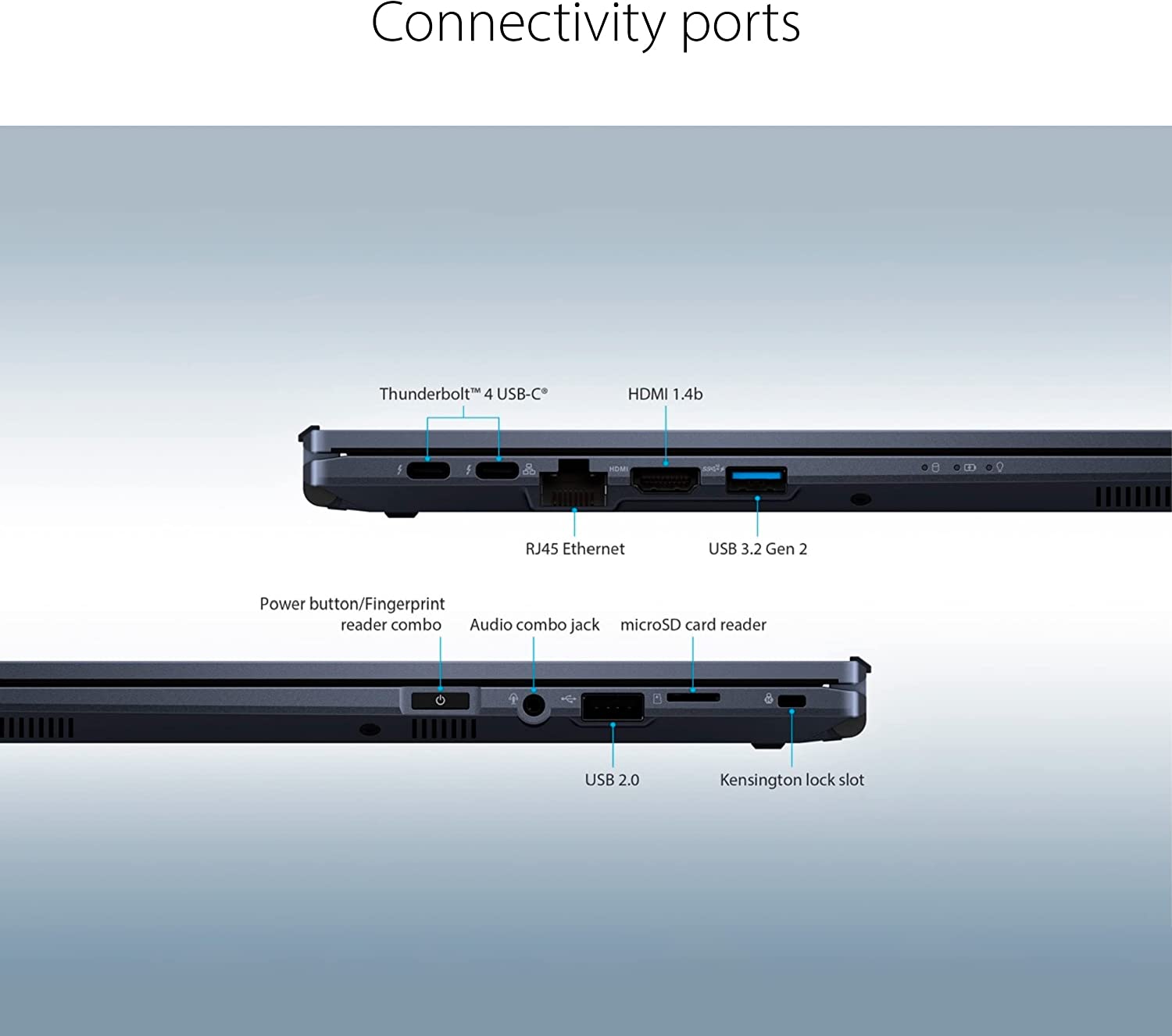 ASUS ExpertBook B5402 is built for business success in style, with a precision-crafted chassis that’s as light as 2.75 lbs. It’s also set for serious travel with an amazing all-day battery life, and is engineered with many cutting-edge technologies to improve your on-the-go work efficiency. These include an Intel Core processor, AI noise cancellation, ASUS NumberPad. It’s also packed with features to protect your privacy and business data, including a built-in fingerprint sensor and TPM 2.0 chip.