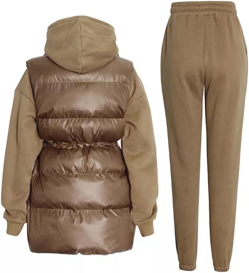 n/a Solid Three Piece Set Womens Hooded Collar Sweatshirt Turtleneck Sleeve Cotton Vest High Waist Trousers Female Sets (Color : A, Size : L Code)