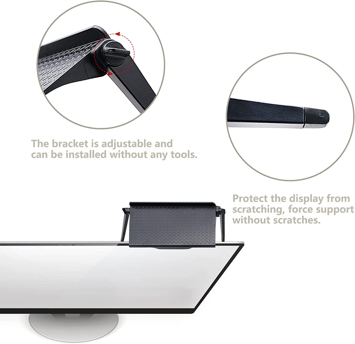 • 【Save Space】The large screen shelf is located behind the top of the screen, which does not take up your desktop space, and can store more items without drilling or gluing.