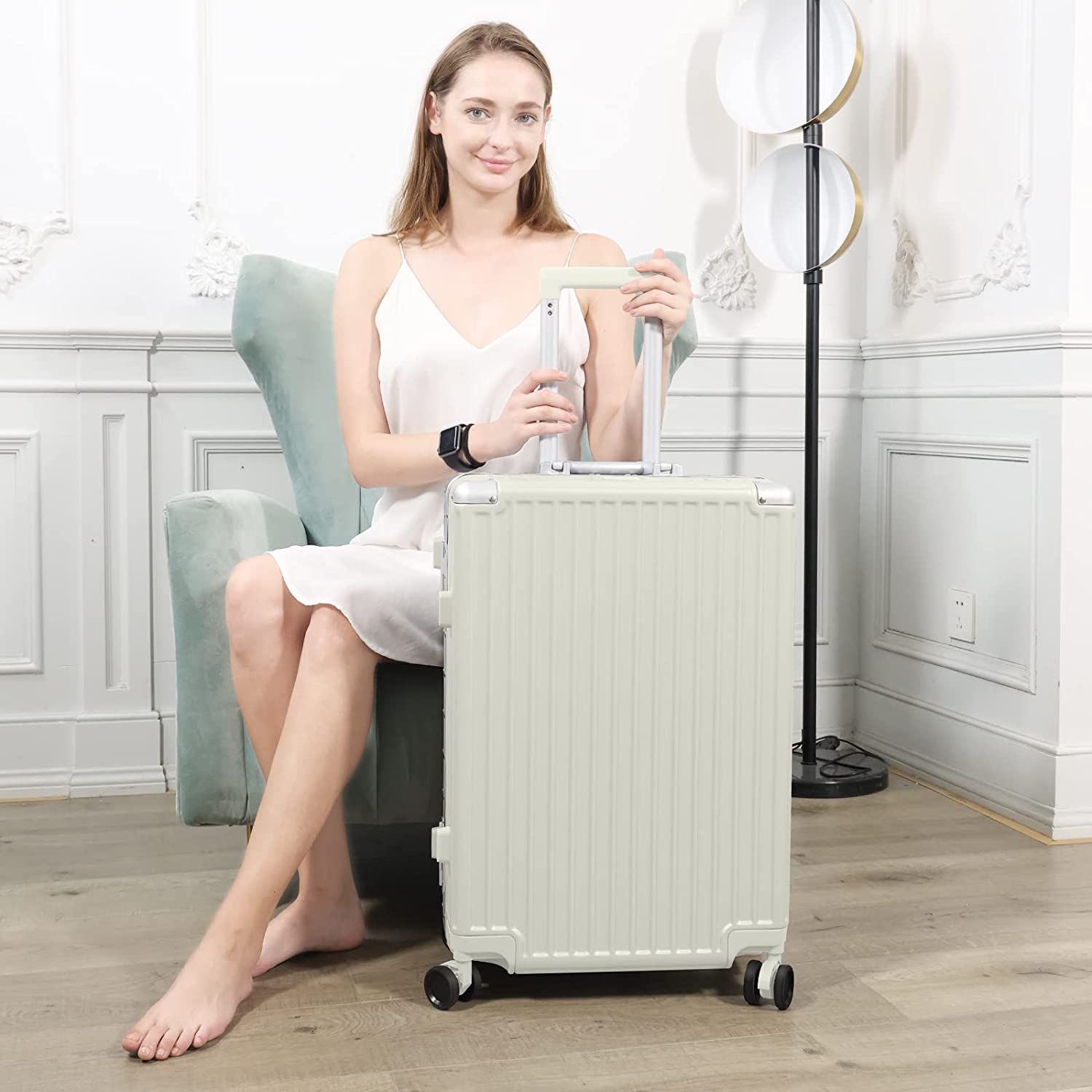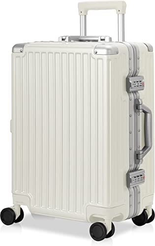 AnyZip Luggage Aluminium Frame Suitcase Hard Shell TSA Lock No Zipper 28In White