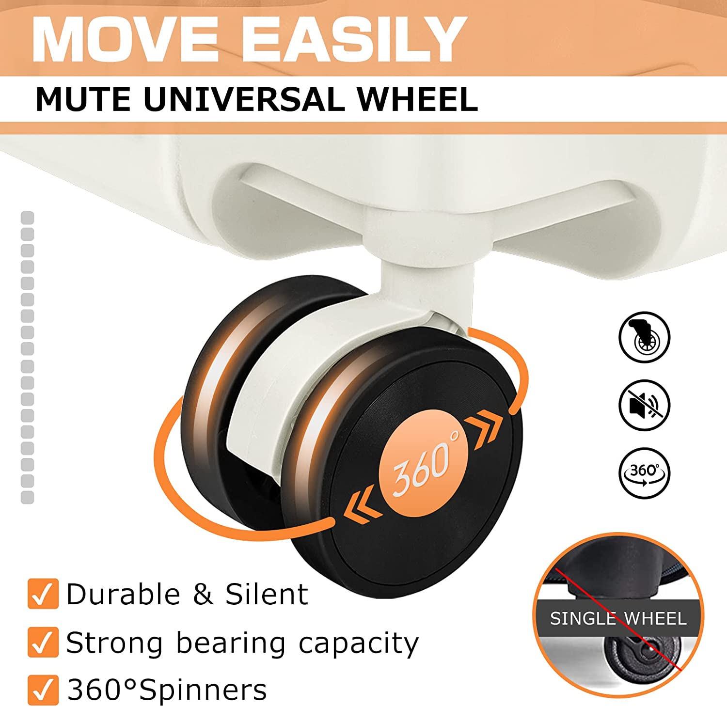 • 【360°Spinner Wheels】 The 4 multi-directional swivel wheels distribute the weight of your luggage evenly, ensuring an easy glide through a busy airport or train station, quietly and smoothly. The double wheel design is more durable.