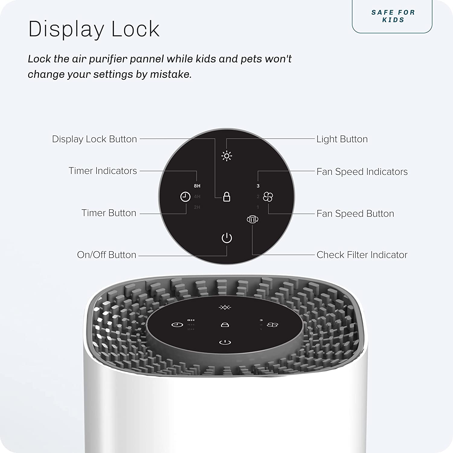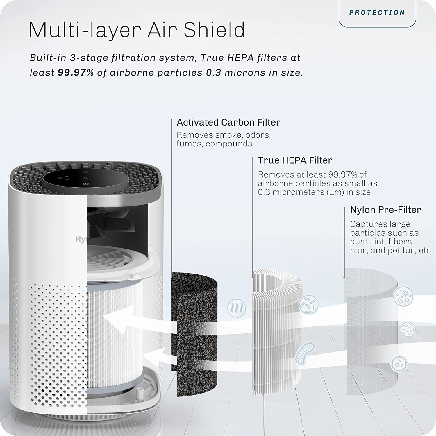 • High Efficiency: With the upgraded 3-stage filtration system, the True HEPA Filter works alongside the Pre-Filter and High-Efficiency Activated Carbon Filter to capture 99.97% of airborne particles 0.3 microns.