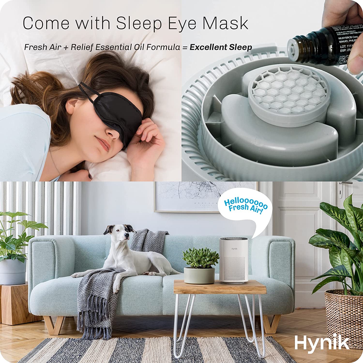 Hynik Alviera Air Purifiers for Bedroom, Air Purifier w/ H13 True HEPA Filter for Smoke Pollen Dander Hair Smell, 24db Filtration System Office Living Room Kitchen, Gfit for Home, w/Sleep Eye Mask