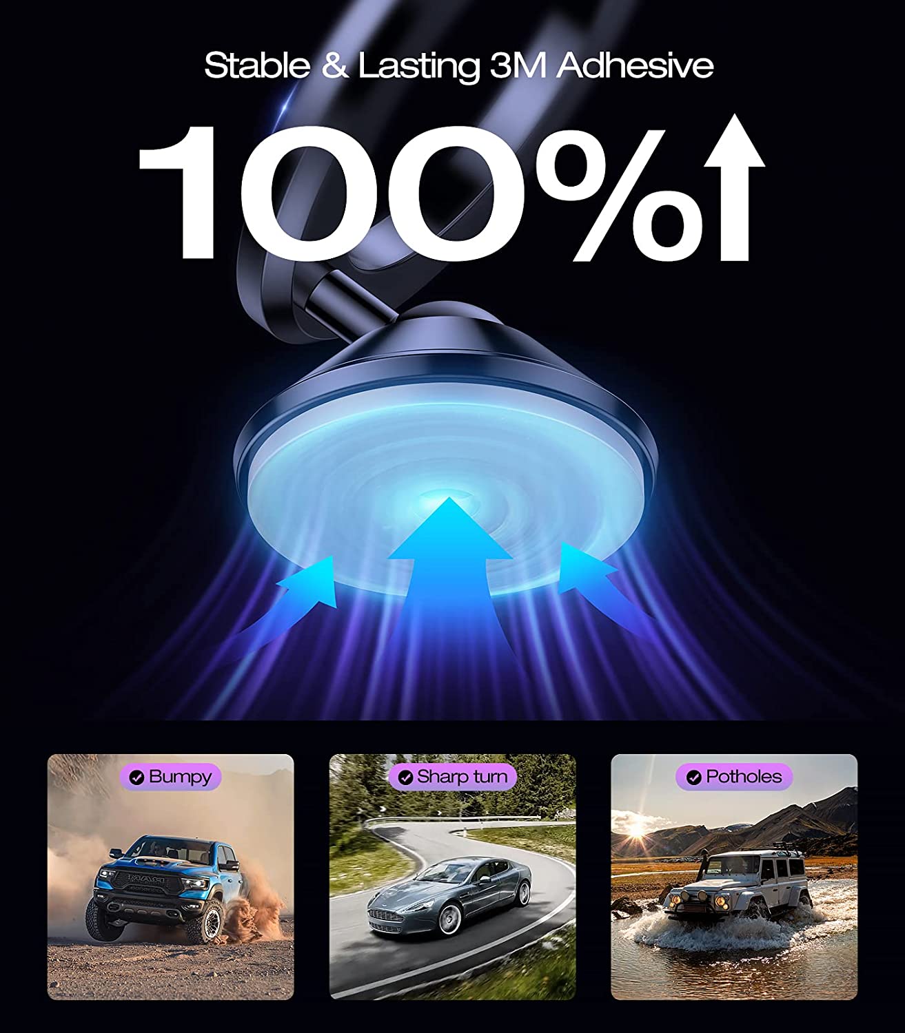 • ?Strongest Adhesion & Never Drop - Vicseed magsafe car mount adopt genuine authorized high-quality 3M adhesive, which is super sticky and long-lasting. So even in extreme environments from -40°F to 194°F, this magnet car phone holder mount will not deform or fall off. And we thicken 3M adhesive to 0.06in to ensure a seamless fit on various surfaces, also give 2 different 3M adhesive, so Vicseed magnetic car phone holder can 100% fit the center consoles of various cars