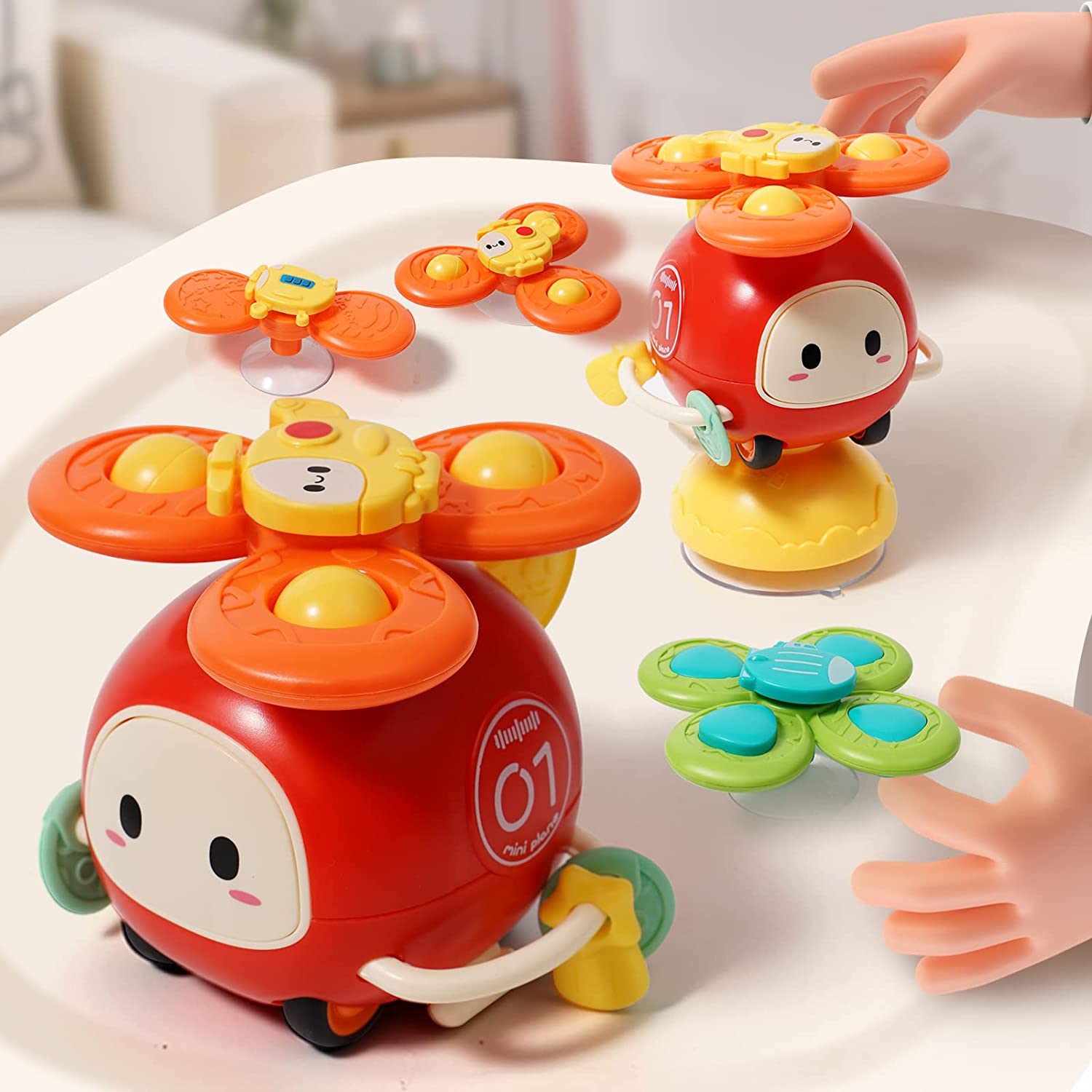 • 【Longer Play Time】Travel Toys for Toddlers,Suction Cup Spinner Toys,Twist Gears, Push and Go Car...this baby toys 6 to 12 months has a handle design, suitable for your baby's little hands to hold.and the suction cup can be easily attach to any smooth surfaces, like high chairs & stroller trays.the suction spinning toy lasts longer suction,let baby no longer get bored
