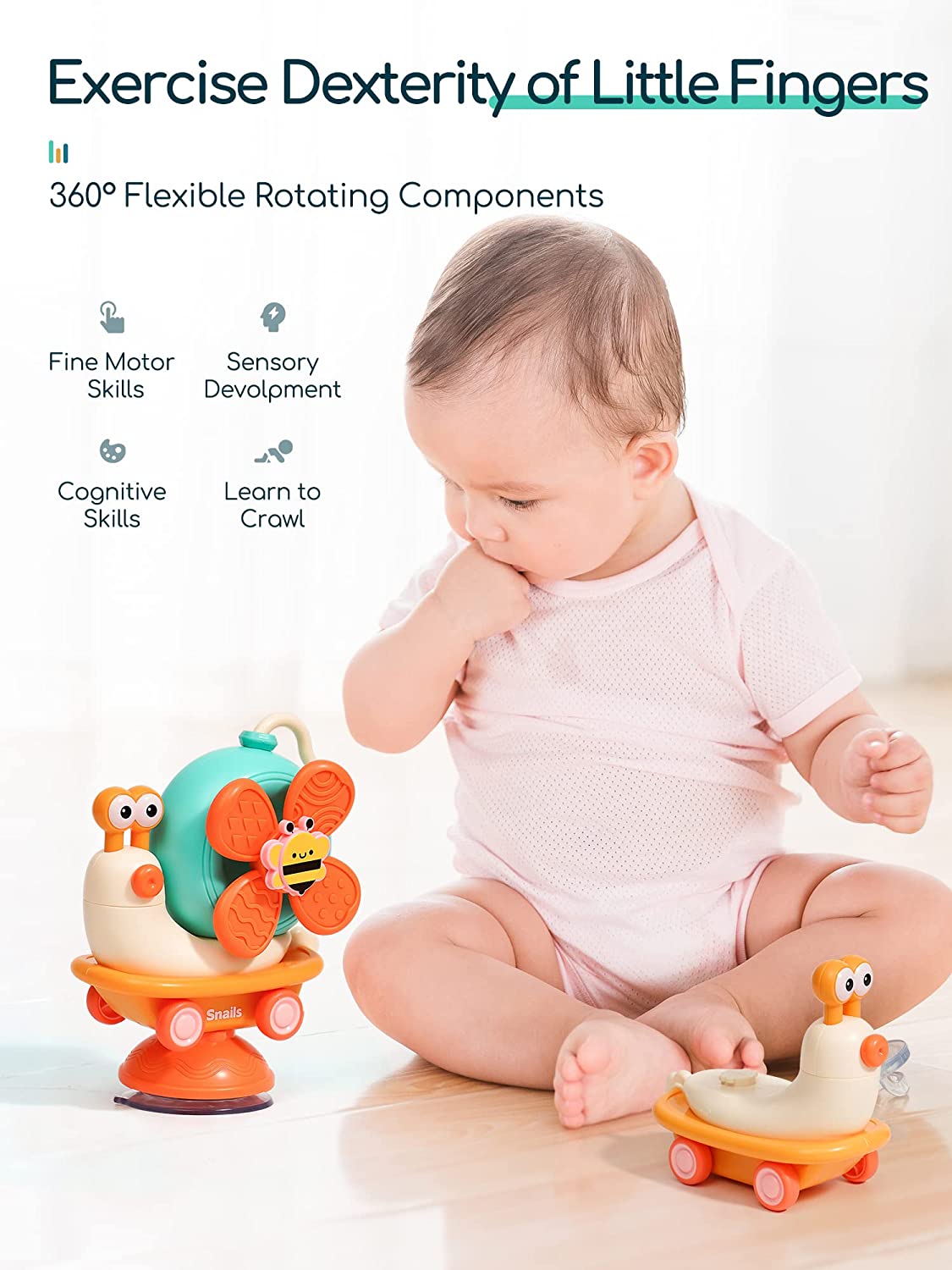 • 【Multi-Montessori Toys】The toddler toys enjoy a cute Snail-shaped car,our baby tray toy includes a suction cup that can change into various forms. definitely attract your baby's attention. Encourage Baby to Entertain Himself at Mealtime