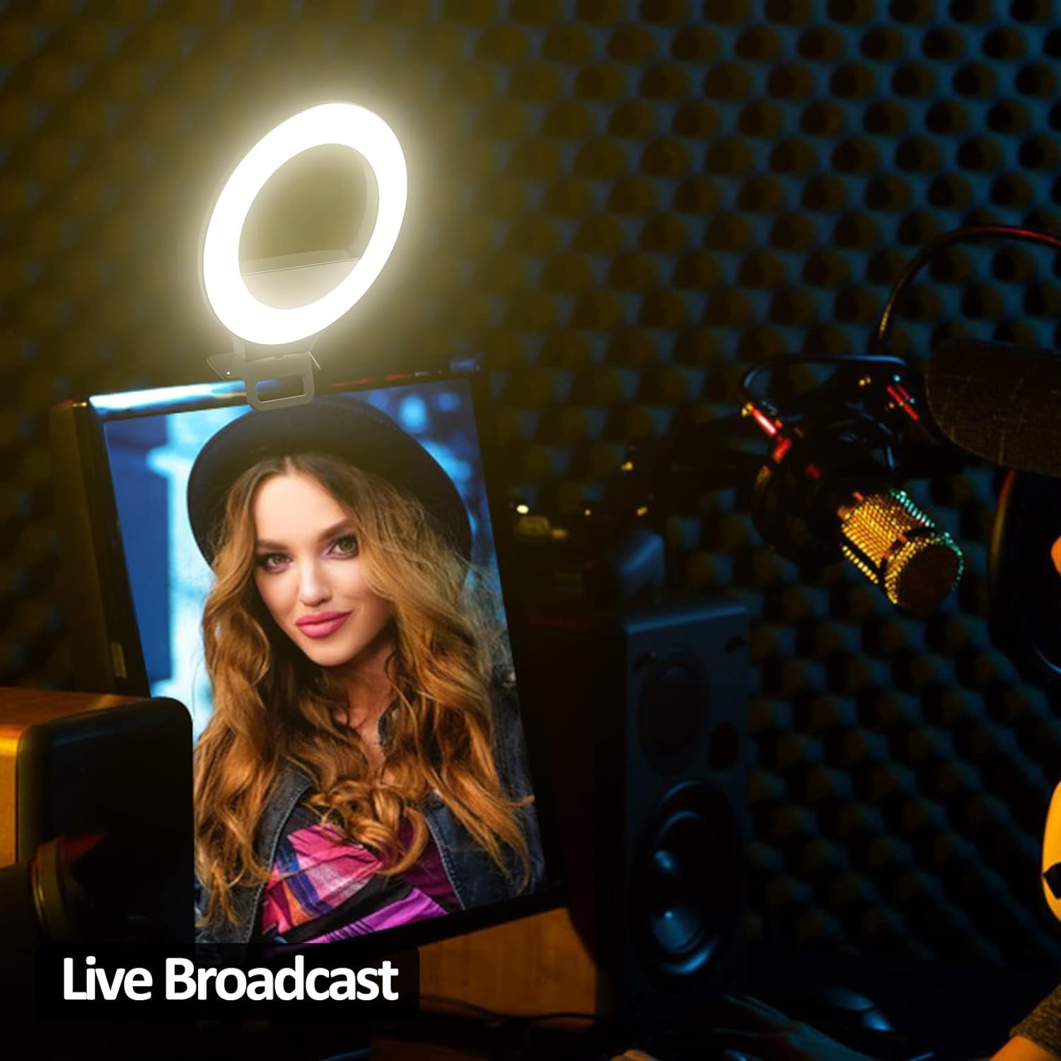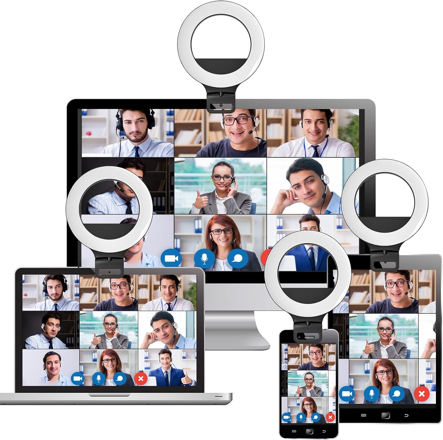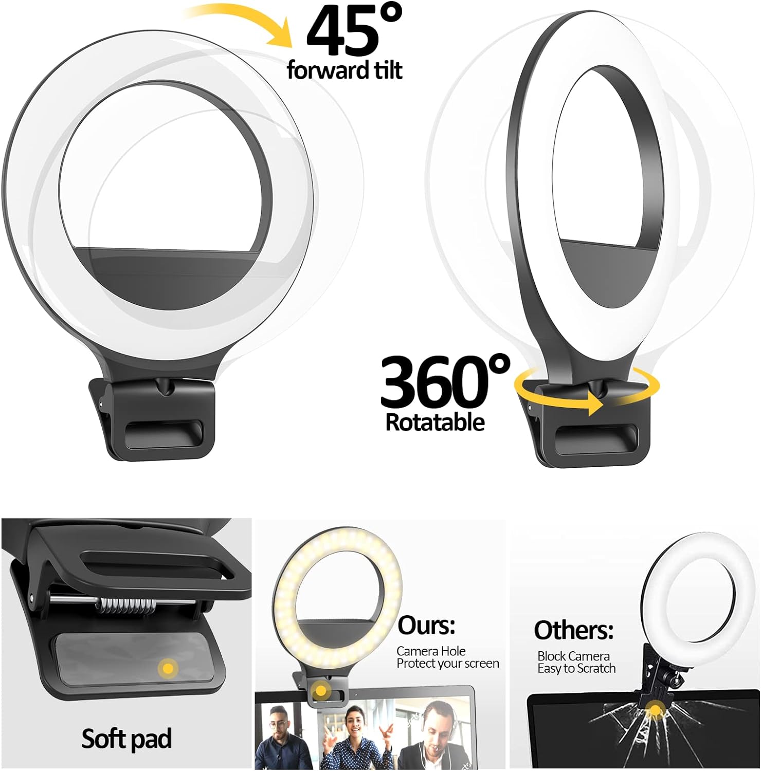 • 【Secure and Convenient】: The computer ring light features a sturdy clip that attaches easily to the device, and silicone padding that protects your screen from scratches. Take your video conferencing light wherever you go for professional-quality lighting on the go.