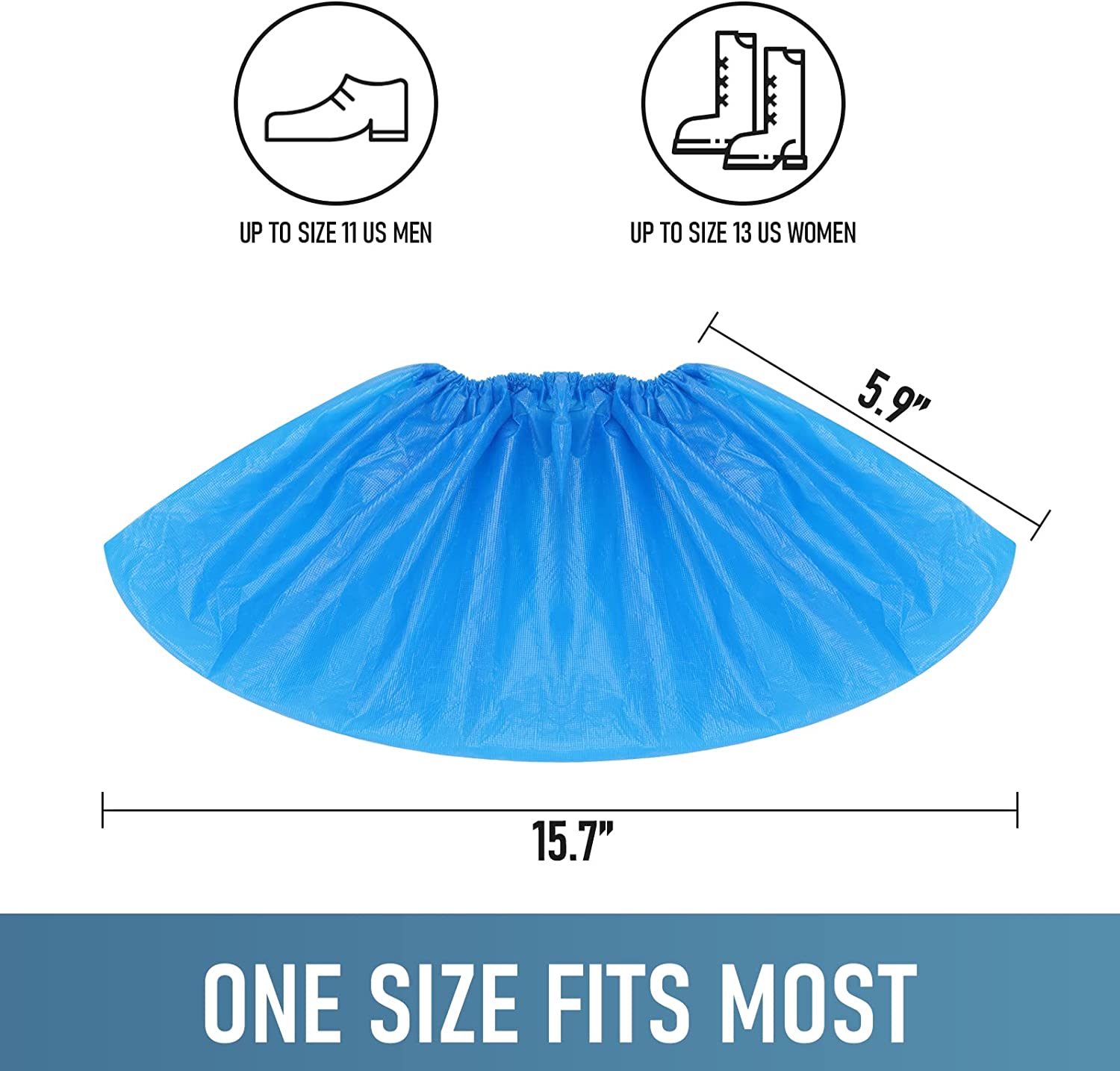 - Adjustable Size: Applicable to the large size of US Men's 11In & Women's 13 In. One size fits most, stretchable size about 13.8In in length and 5.9In in width. It's the waterproof shoe cover you deserved