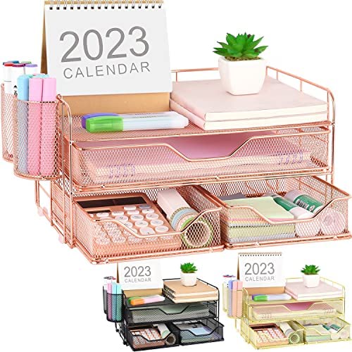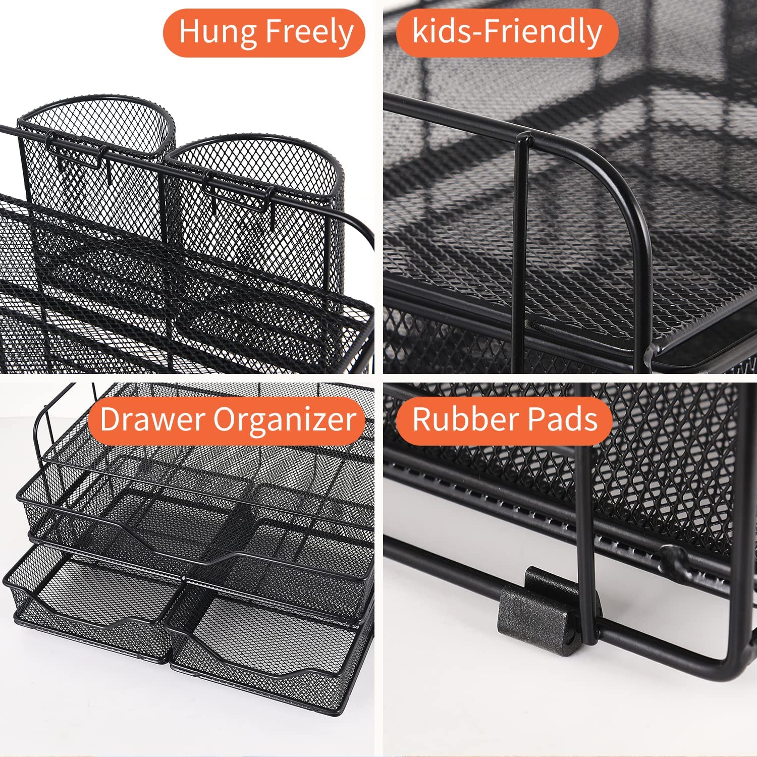 ? [Perfect Paper Organizer] Desk drawer organizer has open top storage space+2 hanging pen holders+3 different drawers. It is convenient for you to quickly identify and sort out desk accessories, letters, and greatly improve your work efficiency.