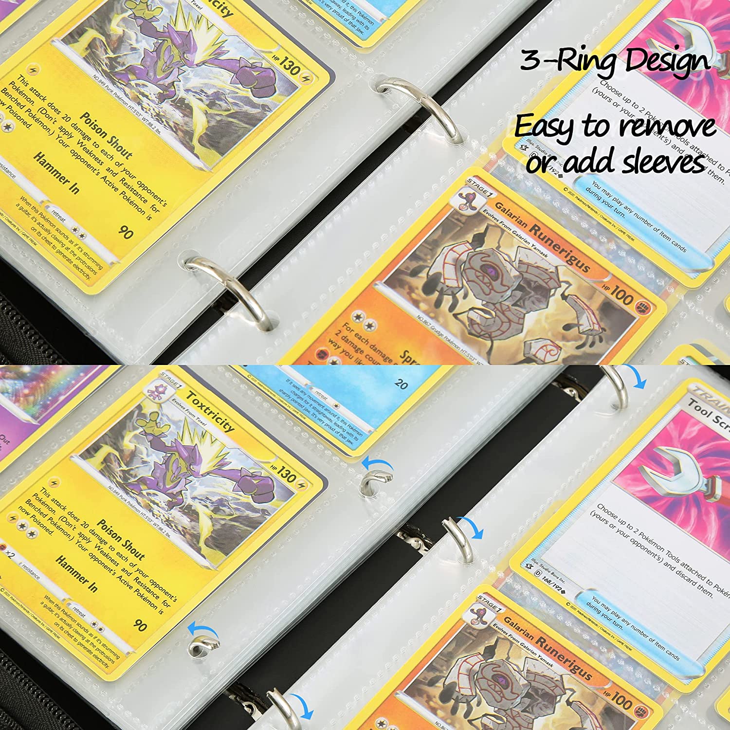 • ⭐This trading card binder is made of waterproof PU leather, carbon fiber design, resistant to dirt, and scratch-resistant. Card sleeves are made of polypropylene, visible, waterproof, durable, and nice to protect your cards from fading and stain.