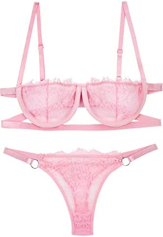 The floral sheer lingerie set is made from comfortable and soft lace fabric with bralette, partially lined with high quality mesh fringe trims and lace thong panties. The underwire on the bra can provide you with strong support and make it fit your body perfectly.