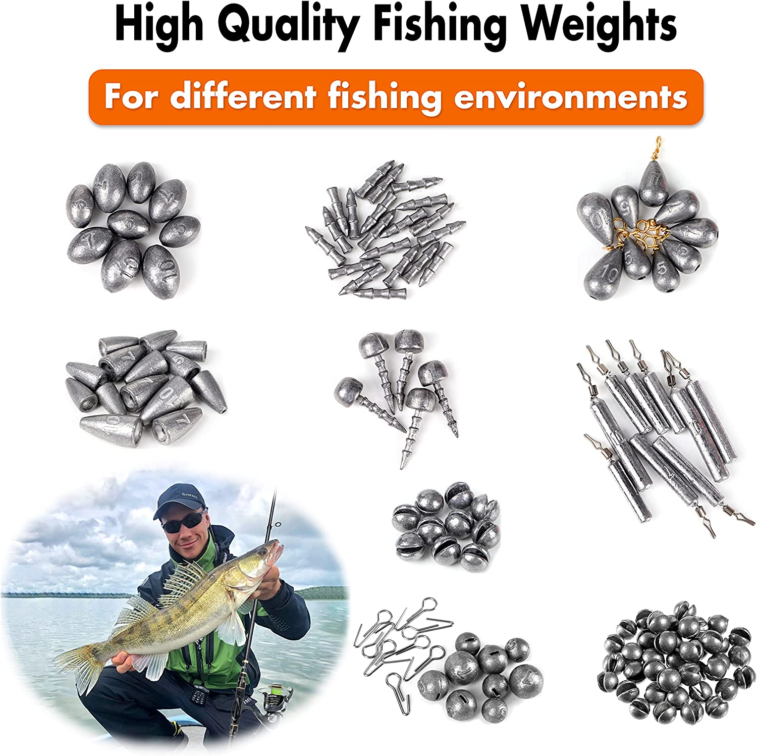 - 【Complete Fishing Tackle Kit】- PLUSINNO 397pcs fishing gear is loaded with 12 fishing rigs for fishing enthusiasts and beginners. It collects nearly all fishing accessories including Fishing Hooks, Round Jig Heads, Round Split Shot, Egg Sinker, Dipsey Swivel Sinker, Drop Shot Weights, Bullet Weights, Nail Weights, Neko Sinkers, Fishing Snap, 4 kinds of different Fishing Swivels, Fishing Sinker Slider, Fish Eye Beads, Wacky Rings and Bobber Stops.
