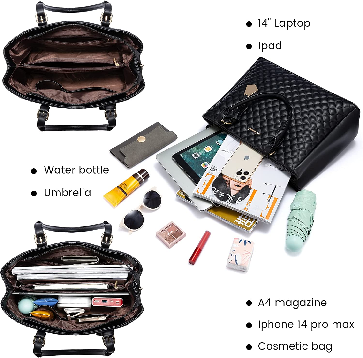 • 【SUITABLE SIZE AND WEIGHT FOR SPACE】The size of this shoulder purse is 14.5*5.4*10.5 inches, and the weight is 2.2IB. As a large leather handbag, it has three compartments (the middle zipper compartment and one open compartment on each side), a zipper pocket, two open pockets, and a zipper pocket on the outside of the bag, which can hold mobile phones, wallets, Umbrellas, water glasses, cosmetics, A4 magazines, and notebooks are also a very suitable work shoulder bag for women.