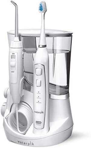 The Waterpik Complete Care 5.0 Water Flosser + Sonic Toothbrush WP-862 combines water flosser and sonic electric toothbrush technologies to create a perfect daily oral care routine. Now you can brush and floss with one convenient device that saves counter space and power outlets. And it's ideal for anyone with braces, implants, crowns, bridges, or other dental work. Complete with 10 pressure settings for low to high power, 5 water flossing tips, 2 brush heads, and the rechargeable Triple Sonic toothbrush, the Complete Care 5.0 is the ideal combination for all of your brushing and flossing needs.