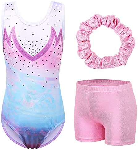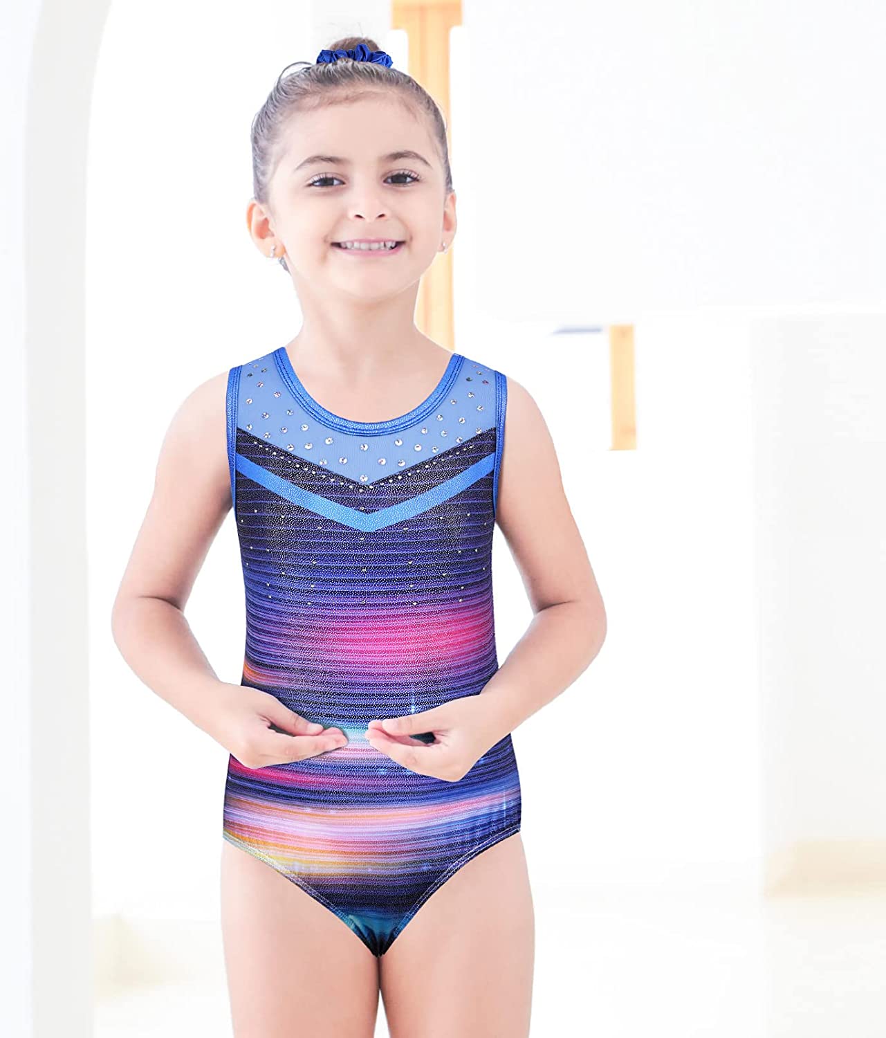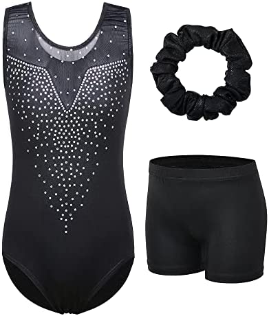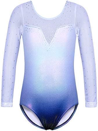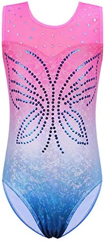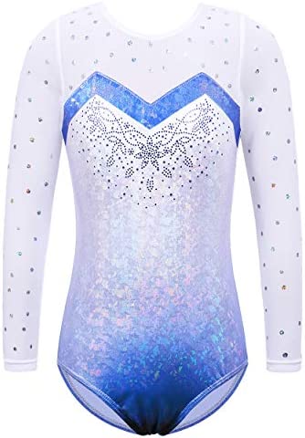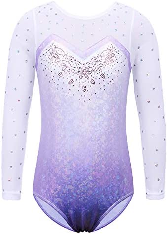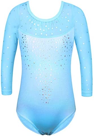 BAOHULU Gymnastics Leotards for Girls Toddlers Kids Sparkle Sequins Mesh Top Dancewear