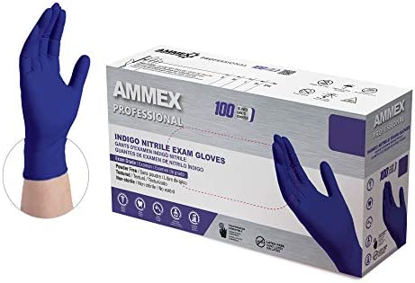 Ammex Indigo Nitrile Exam Gloves, 3 Mil, Latex Free, Powder Free, Textured, Disposable, Non-Sterile, Food Safe
