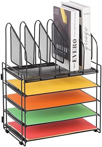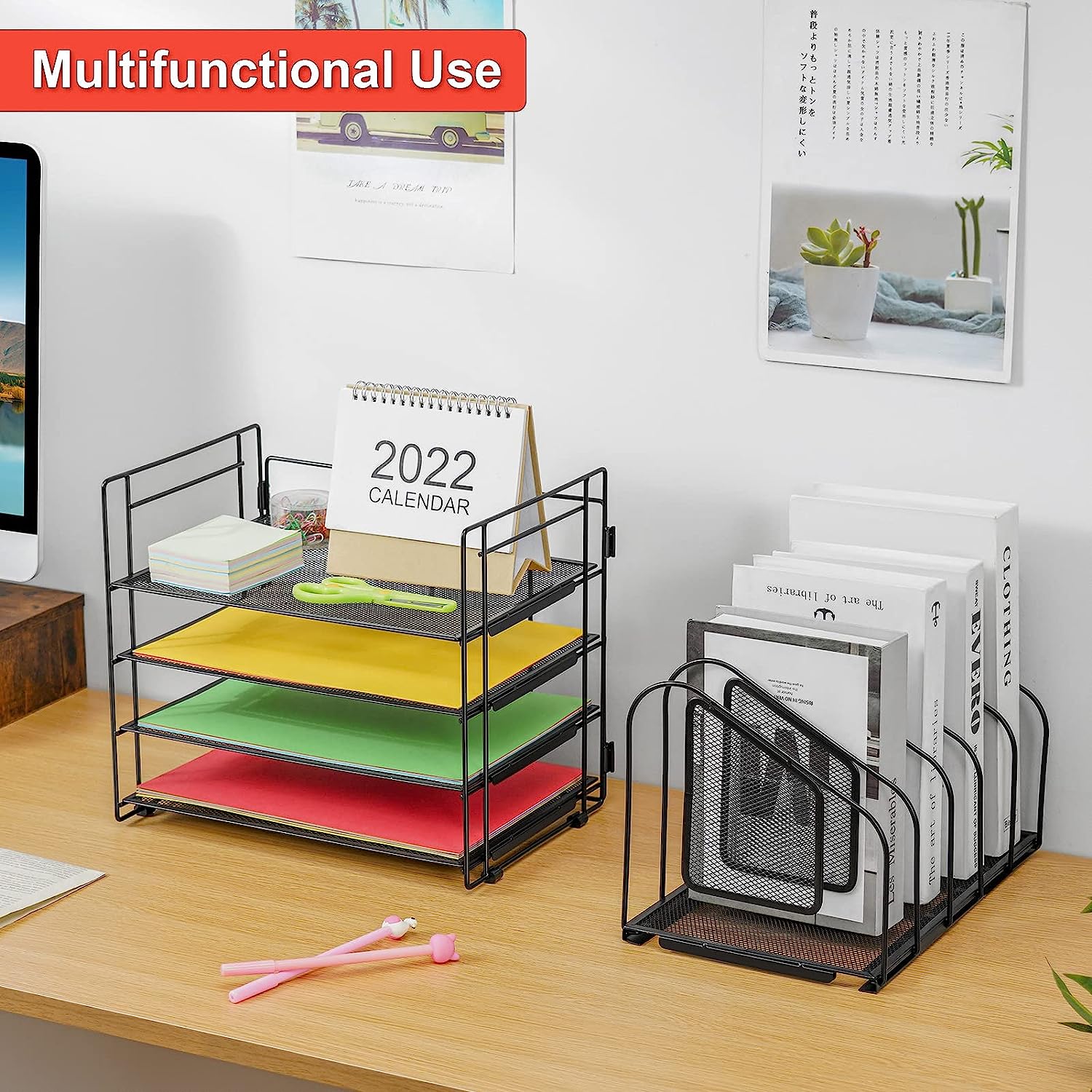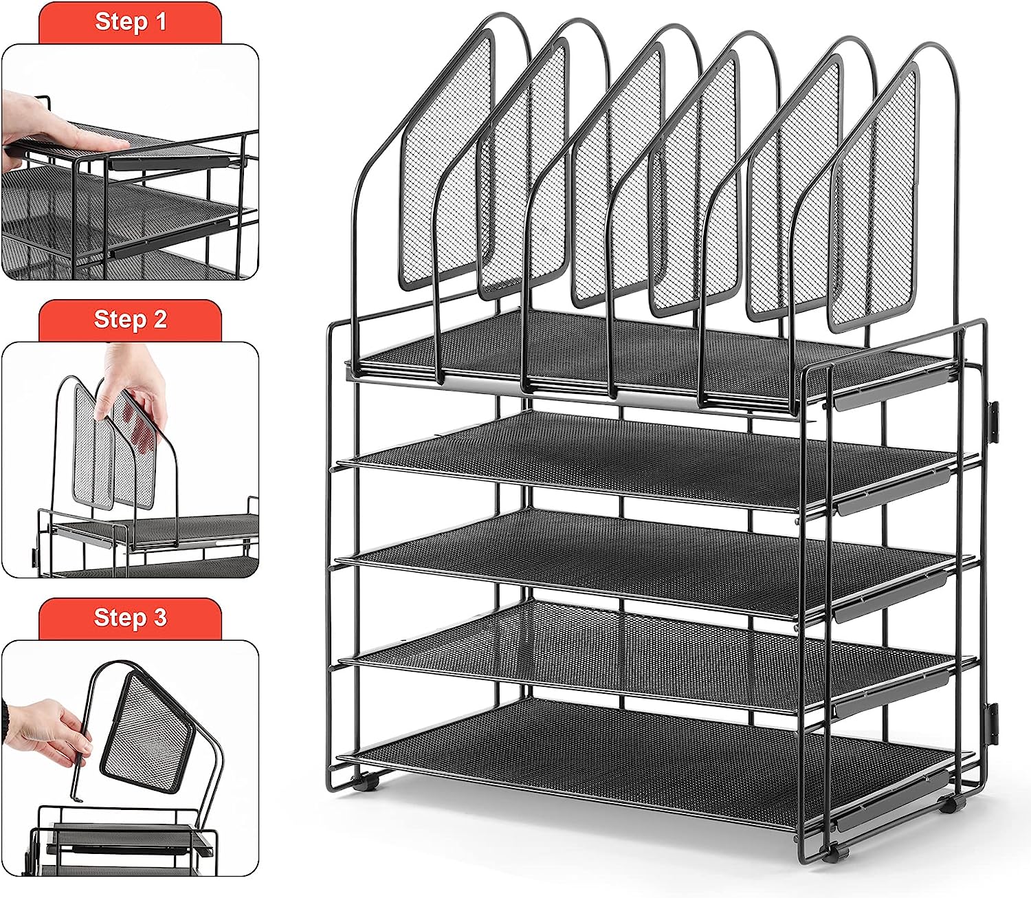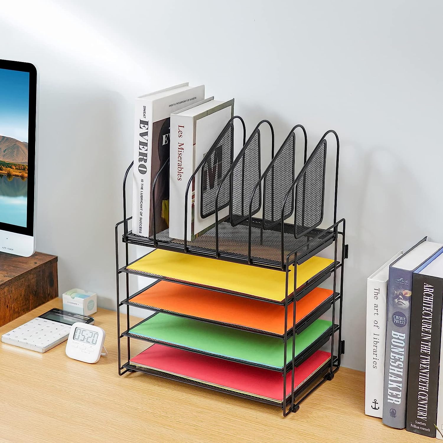 • 【Multifunctional Desk Organizer】Our Desk Organizer is made of 5-tier file organizer + 5 vertical file sorters which has enough storage space to accommodate all office supplies, such as documents, books, bills, folders and Letter/A4 Size Paper