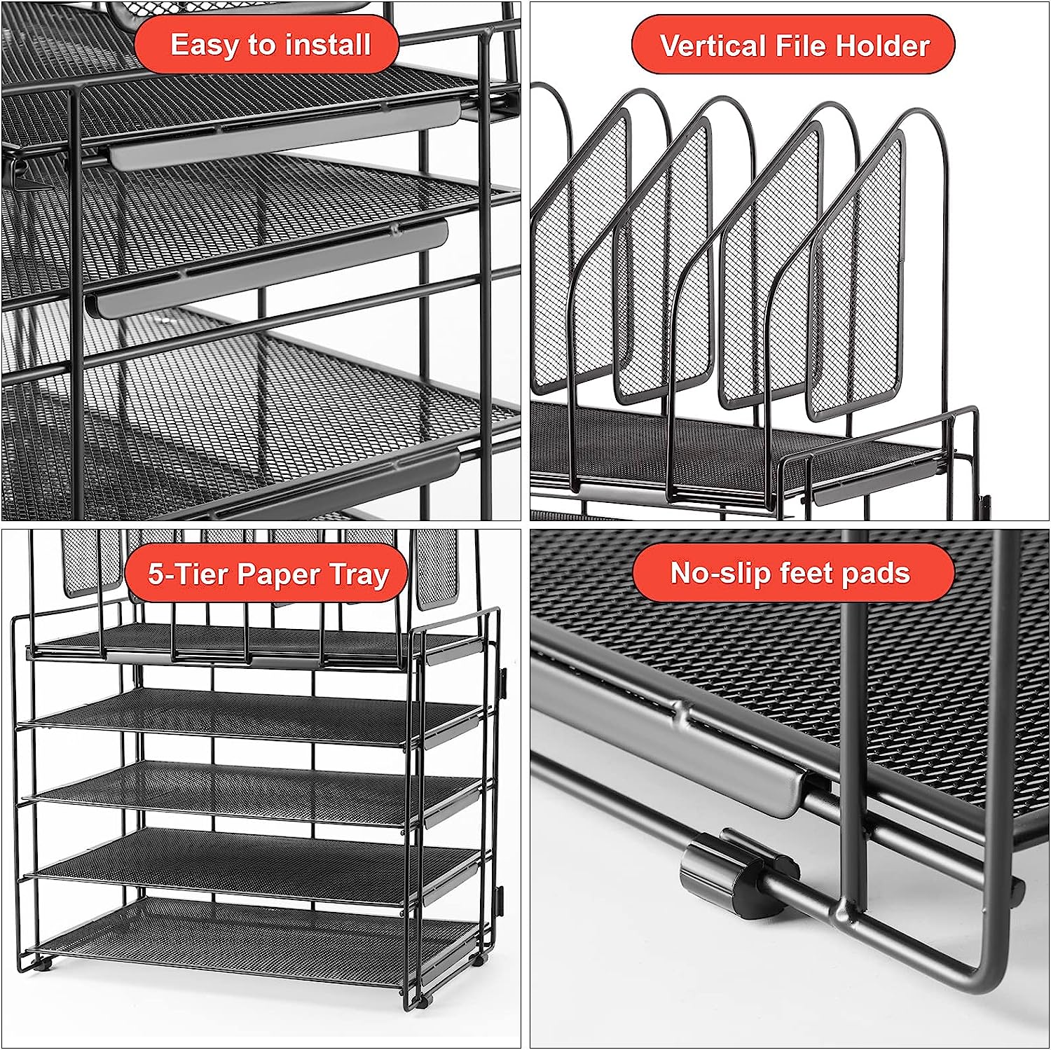 Lavatino Desk Organizers with File Sorter, 5-Tier Mesh Desk File Organizer with 5 Vertical File Holders, Multifunction Desktop Organizer, Desk Organizers and Accessories for Home Office