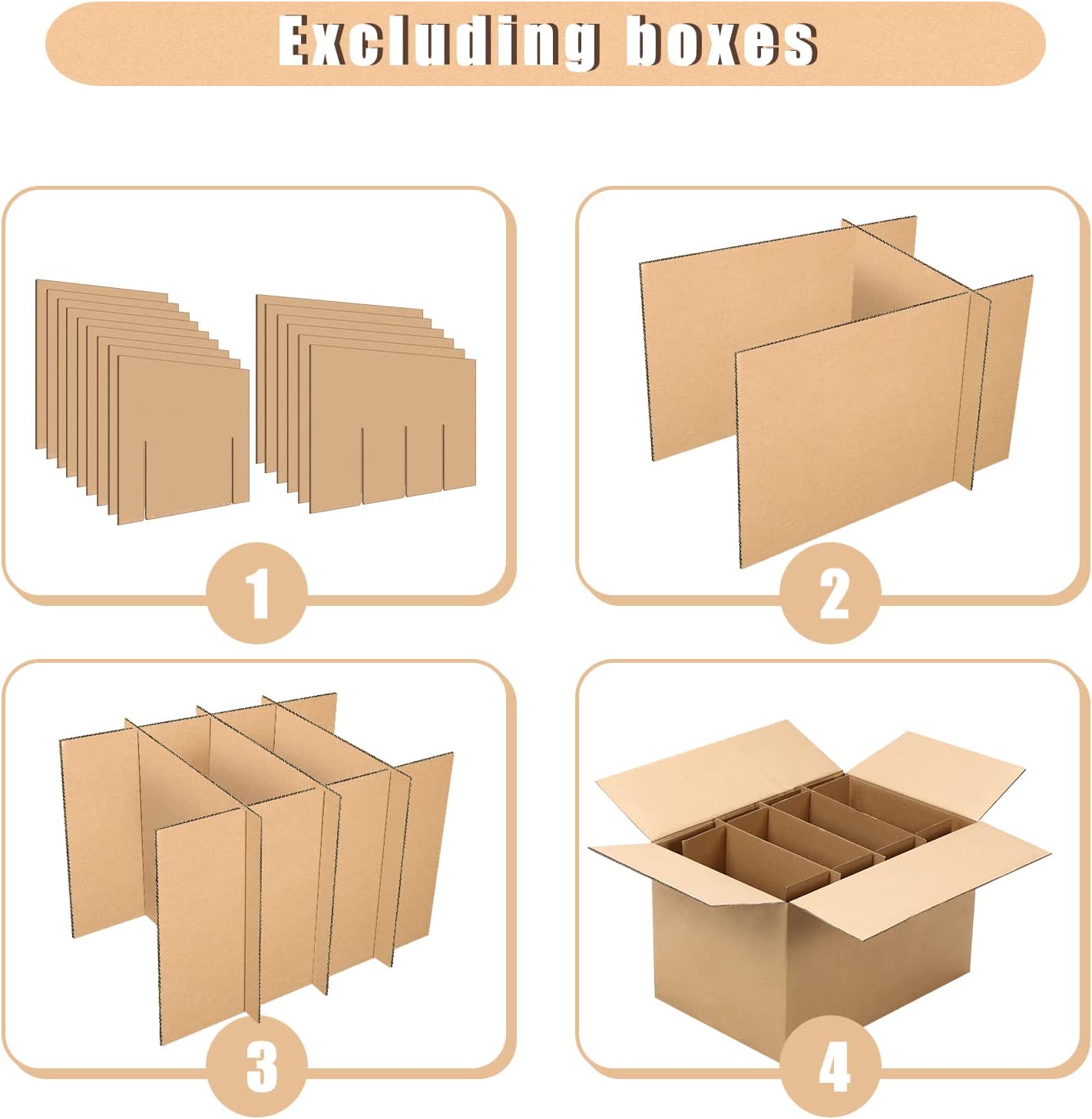 Easy to Apply: dish packing supplies for moving are easy to apply; Simply open the corrugated box divider and assemble every 5 pieces into 4 compartments for storage; The separators and foam pouches are reusable and can be disassembled for storage when not in use; The separators can be cut to different shapes to suit your needs