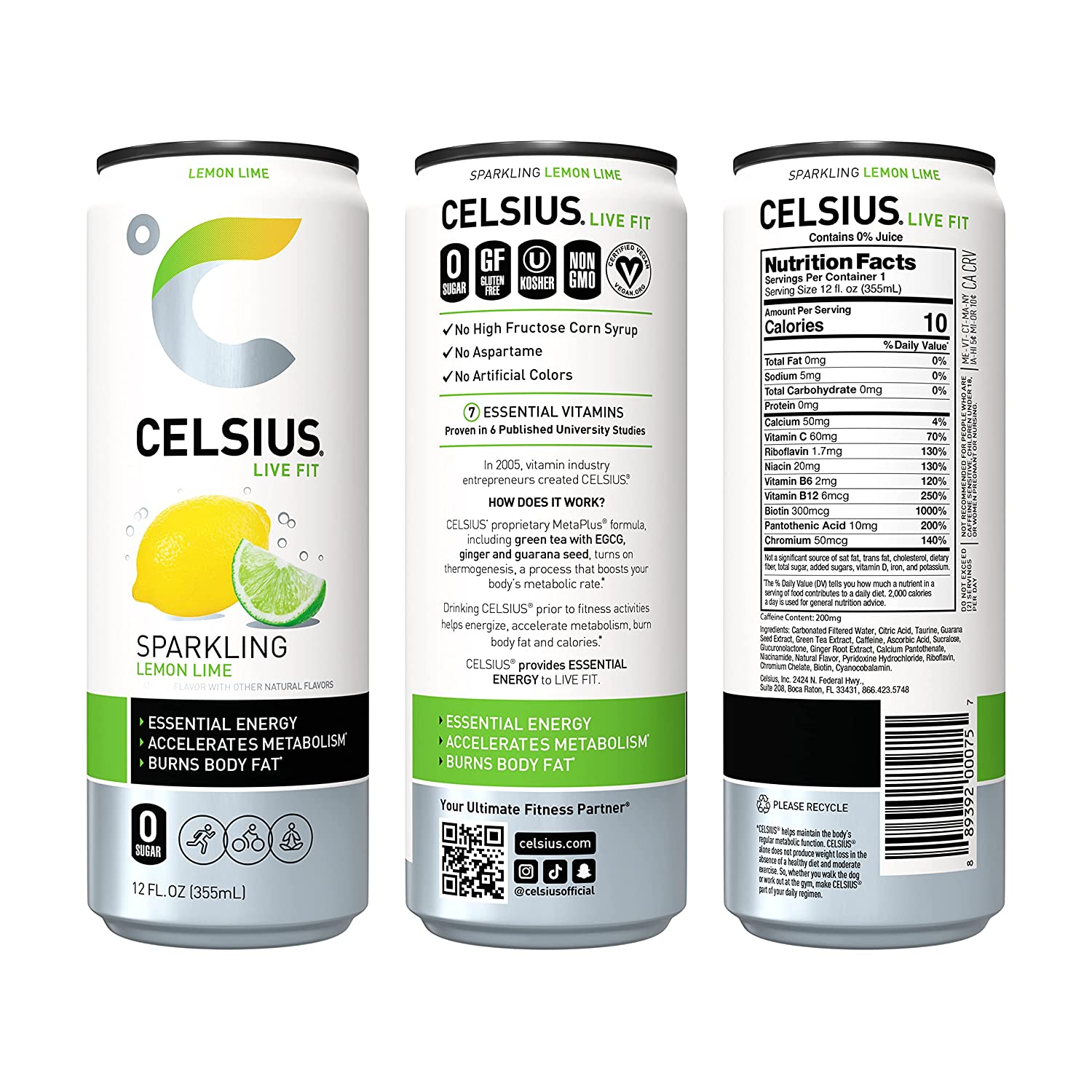 CELSIUS Sparkling Lemon Lime, Functional Essential Energy Drink 12 Fl Oz (Pack of 12)