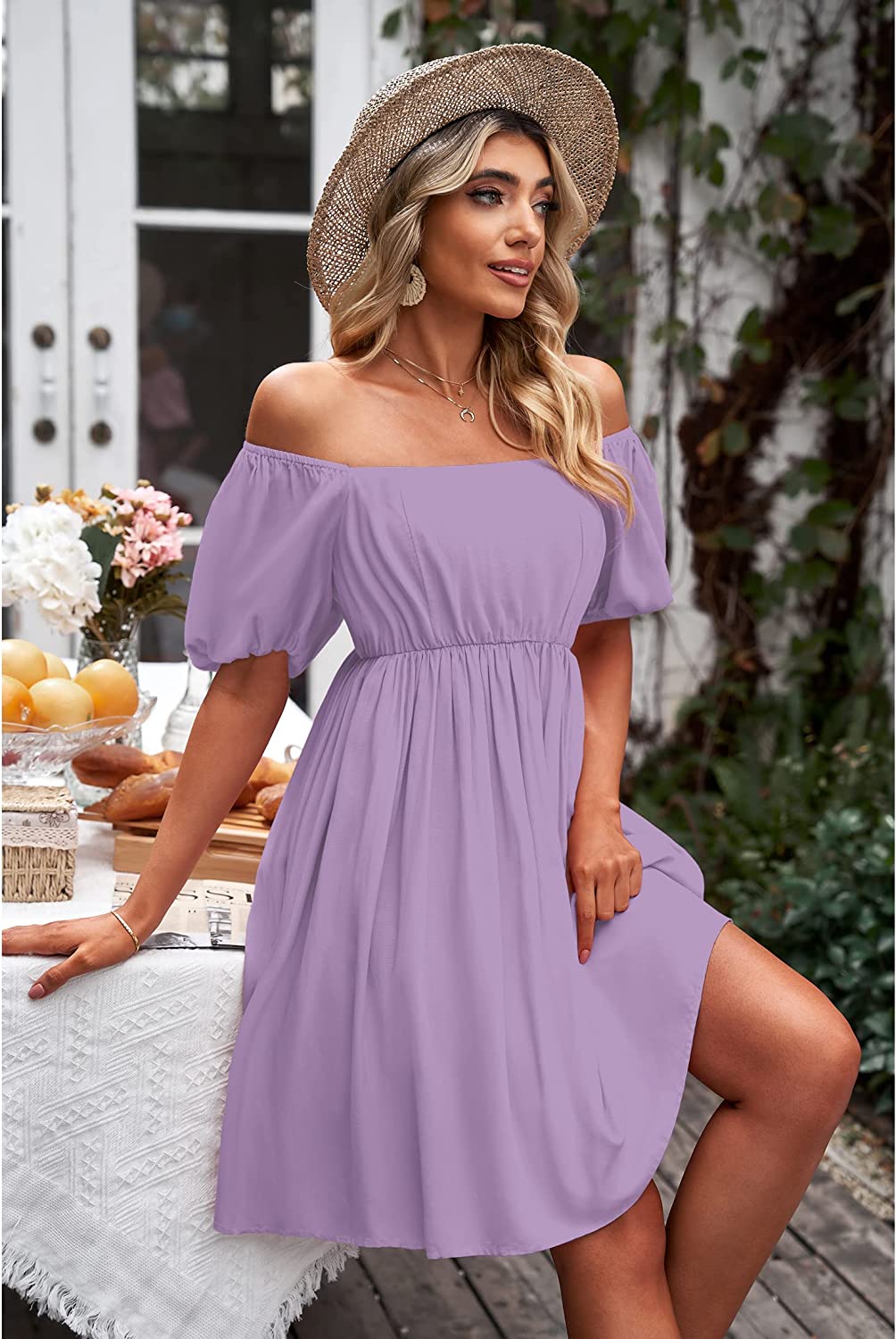 luvamia Summer Dresses for Women Square Neck Off The Shoulder Puff Sleeve A-line Short Flowy Babydoll Dress