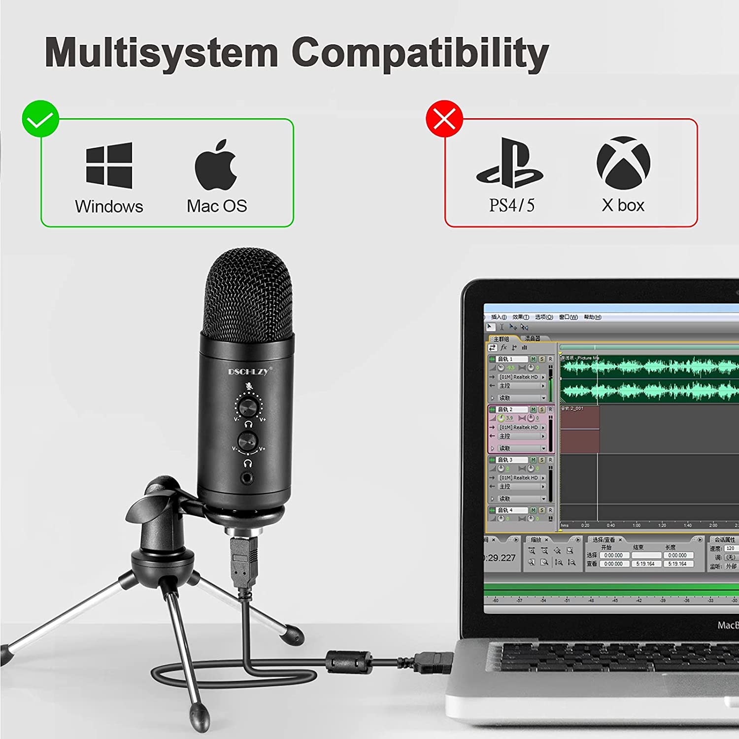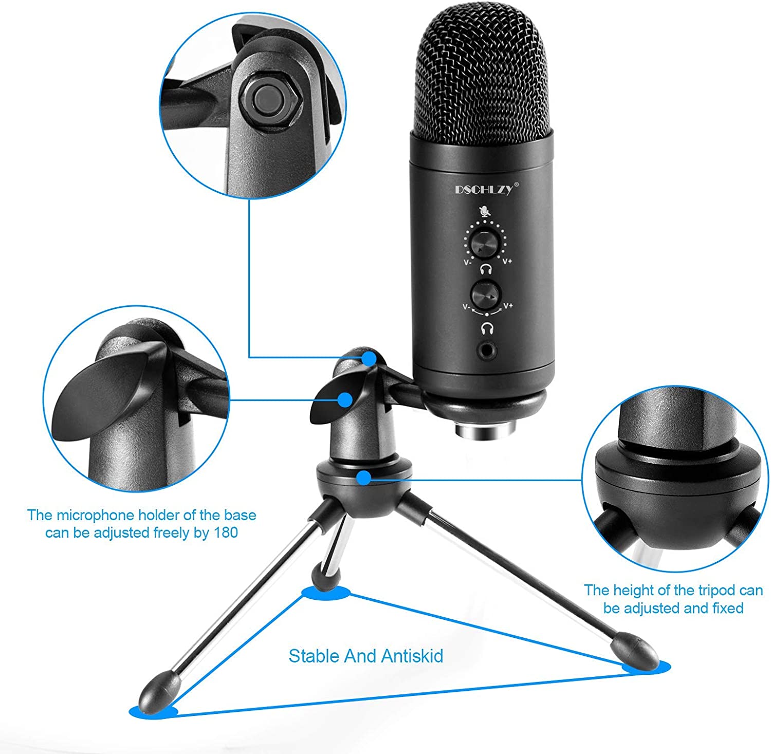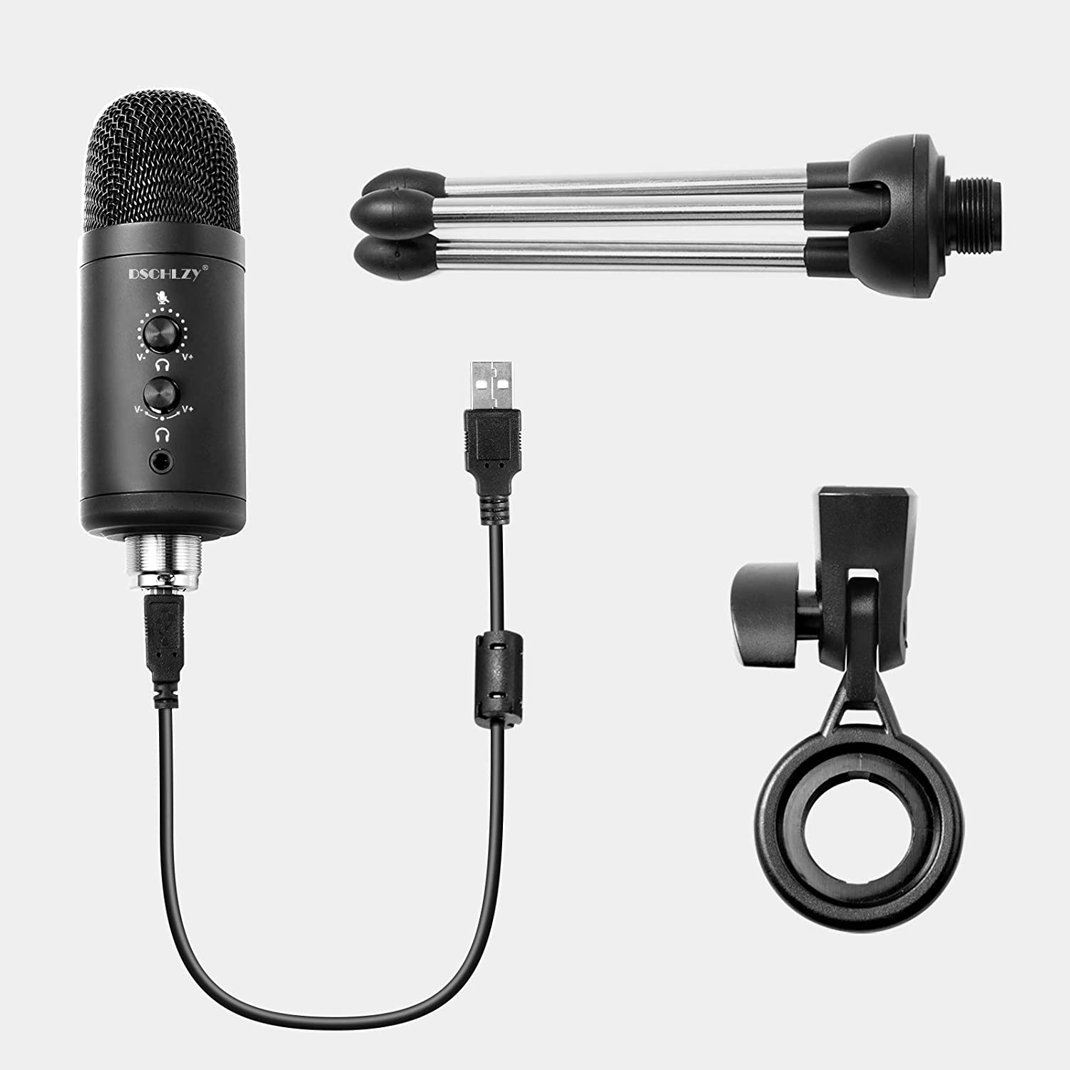 • PACKAGE LIST AND WARRANTY :Condenser Mic + Small tripod + Mini shock absorbers + USB-B to USB-A Cable. DSCHLZY products provide 18-Month warranty to ensure a better shopping experience!we believe in our products so much that if you are not 100% satisfied for any reason, refund will be issued immedia