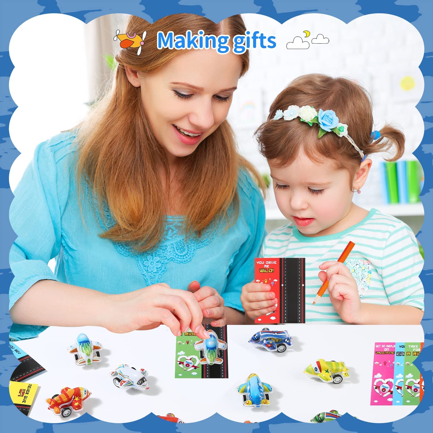 Valentines Day Gifts for Kids, 28pcs Pull Back Airplane Toy With Valentines Cards for Kids Classroom, Valentine Classroom Exchange Party Favors for Kids Small Toys Goodie Bags Stuffers, Pinata Fillers