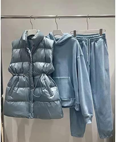 QJPAXL Solid Three Piece Set Womens Hooded Collar Sweatshirt Turtleneck Sleeve Cotton Vest High Waist Trousers Female Sets (Color : E, Size : M Code)