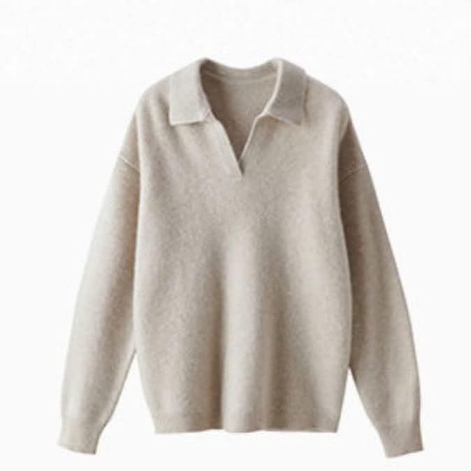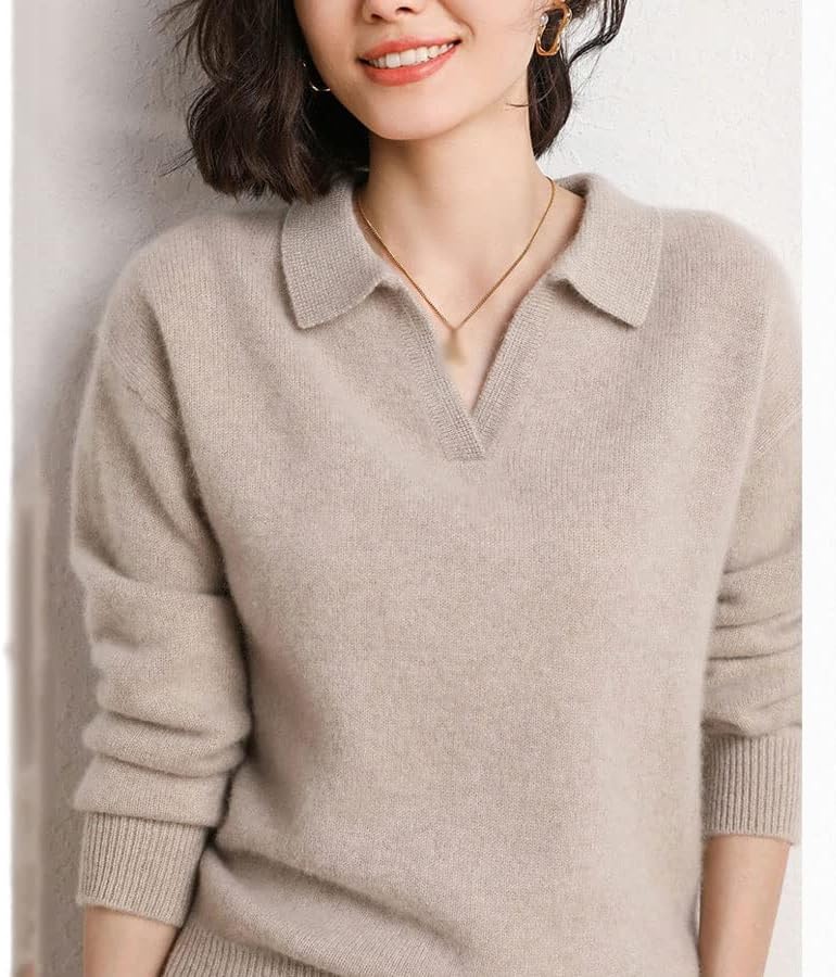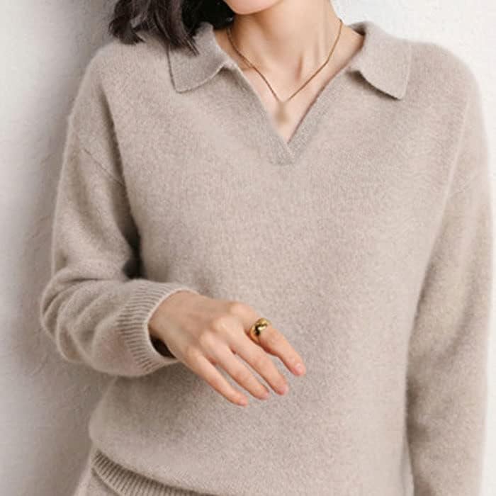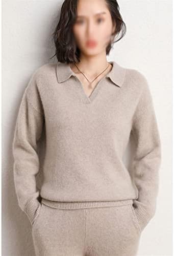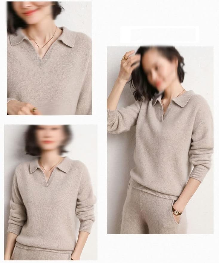 Walnut Cashmere Sweater Women Polo V Neck Set Knitting Loose Casual Wide Leg Pants Thickened Sweater Two-Piece Set (Color : D, Size : XL Code)
