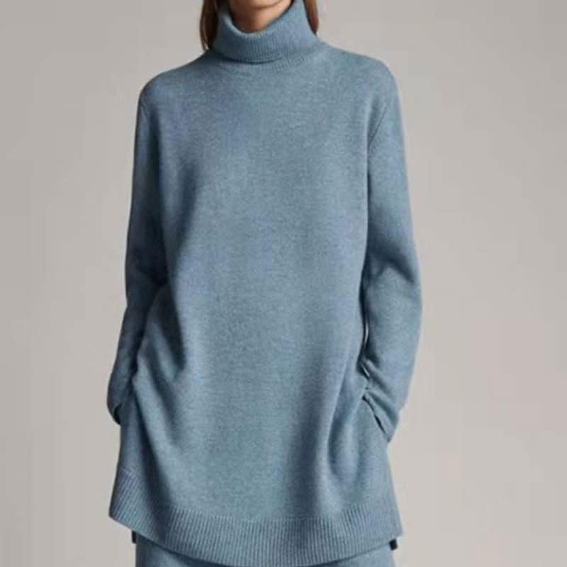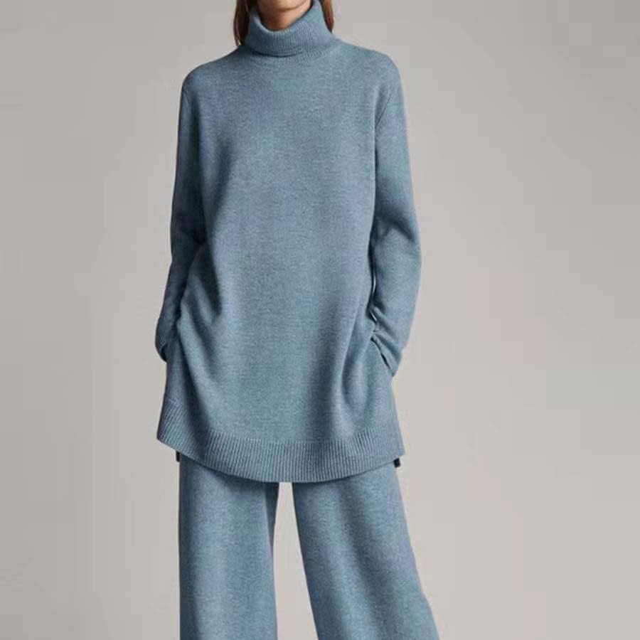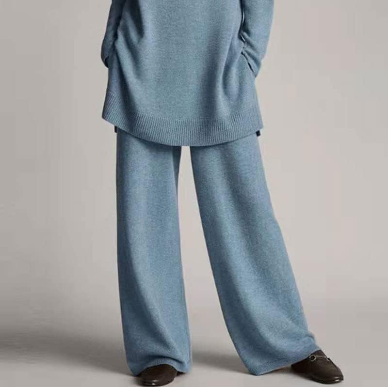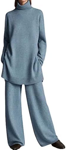 Walnut Autumn and Winter Knitted Solid Color Turtleneck Loose Sweater Wide-Leg Pants Casual Two-Piece Suit (Color : D, Size : M Code)