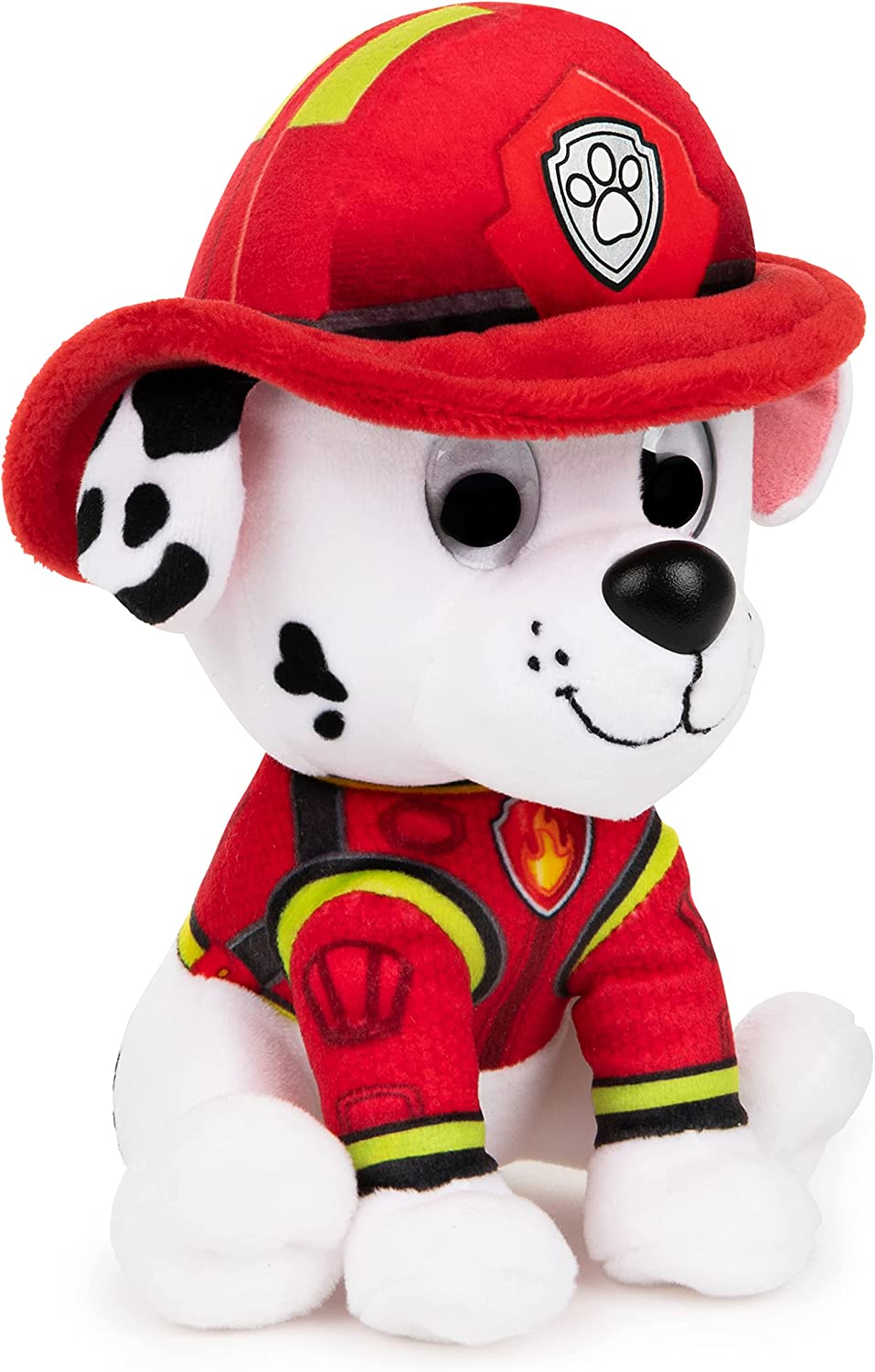 • PAW PATROL: THE MOVIE MARSHALL PLUSH: Marshall’s movie-accurate firefighter uniform & soft hat are finely detailed & printed in rich jewel tones to bring the action off the big screen & into your living room!