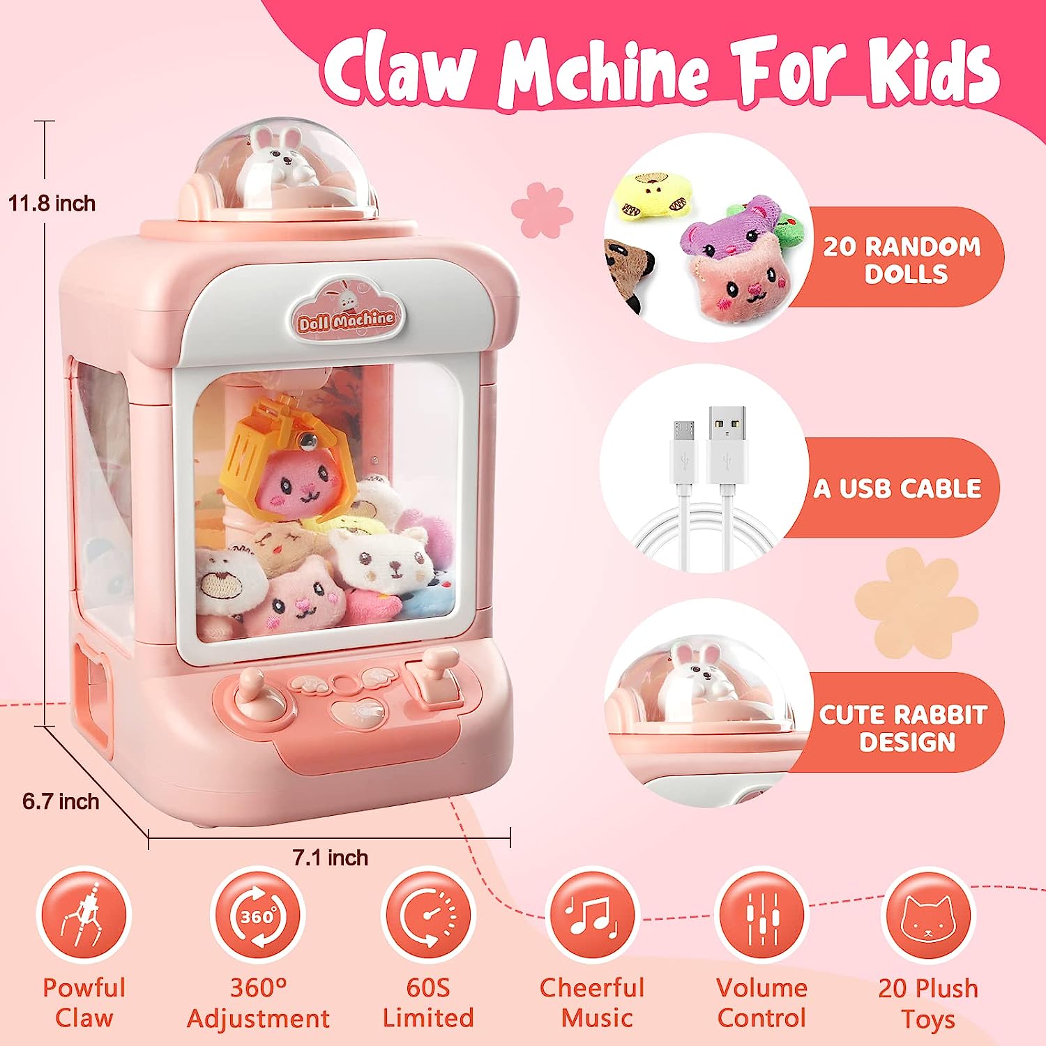 • 【Fun Mini Arcade Claw Machine】-It's time for competition!The kids gather around the arcade claw machine to watching and challenging each other with this candy claw machine, to see who is the best grabber! Great choice for a home mini version of arcade claw machine with 20 random mini plush toy.