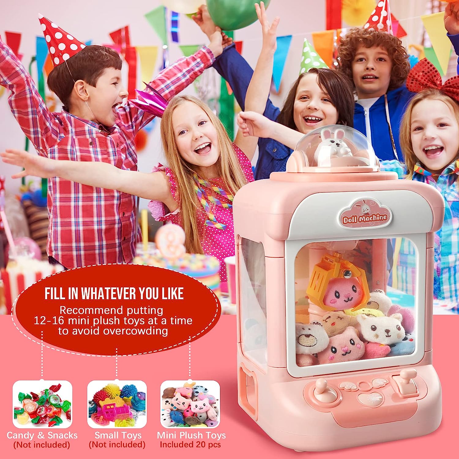 Claw Machine for Kids,Mini Vending Machines Candy Grabber Prize Dispenser Toys for Girls,Electronic Arcade Claw Game Machine for Party Birthday Easter Gifts with Lights Sound & 20 Mini Plush Toys