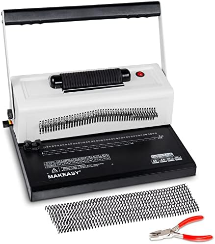 MAKEASY Spiral Coil Binding Machine for LTR/A4 - Disengaging Pins - 4 to 1 Pitch - 20 Sheet Punch Capacity - Electric Coil Inserter - Adjustable Side Margin, with Free 100pcs Coil Spines & Crimper