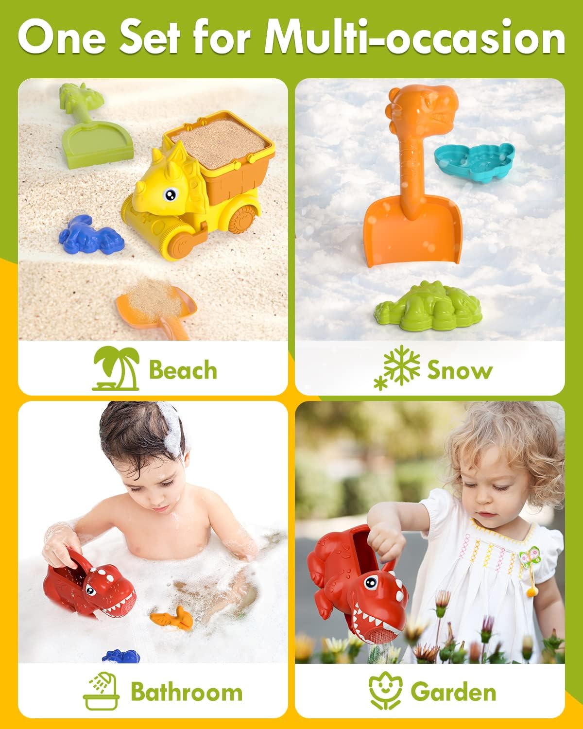 • Best gift for kids: This set of beach toys is perfect for toddlers to play at beach, snow, pool, garden, backyard, sandbox, baby bathtub and wherever. Both boys and girls will enjoy the variety of fun that a set of toys can bring. Enjoy enjoyable family fun together.