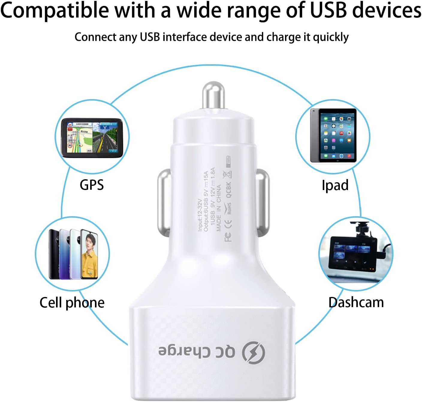 • 【Universal Compatibility】: Suitable for almost all cars, vehicles, SUVs. Perfect for smartphones, dashcams and more USB devices. It connects a variety of devices at the same time and charge quickly. This charger has a delicate case, small and compact, easy to carry. Drop-resistant housing, robust and durable.