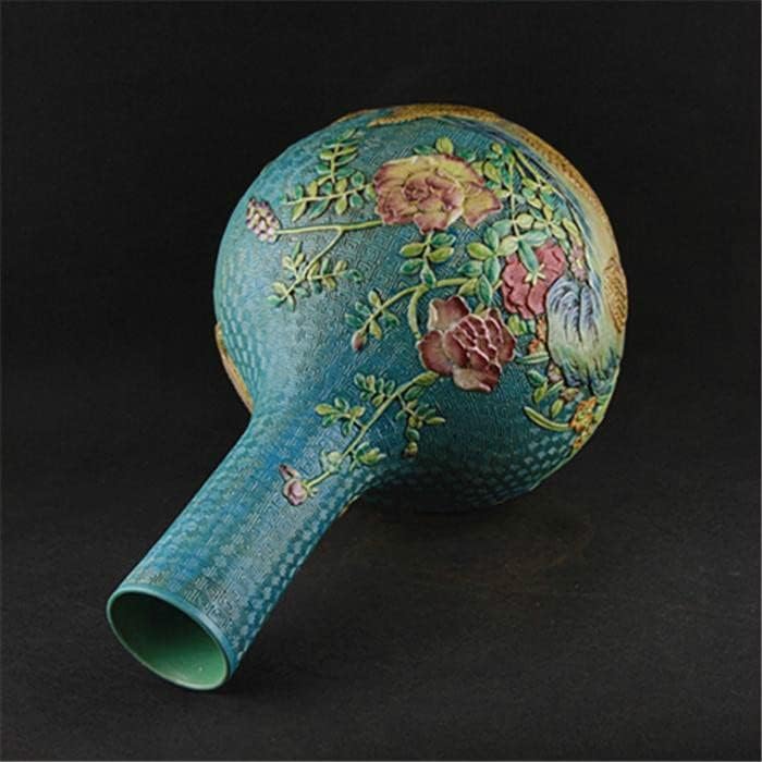 QUUL Classic Green Ceramic Vase Embossment Antique Porcelain Flower Vase for Decoration
