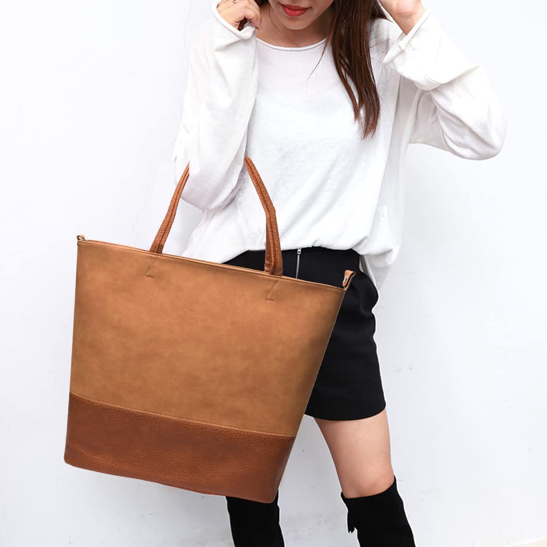Suede Leather Handbags for Women Large Shoulder Bag Satchel Handbag Shopping Tote Large Mom Purses